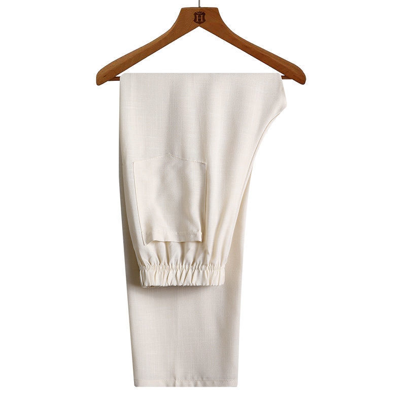 • 면과 린넨 바지 화이트