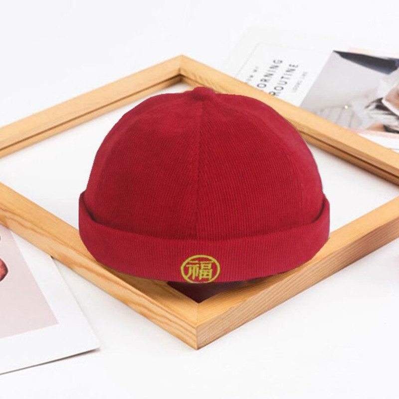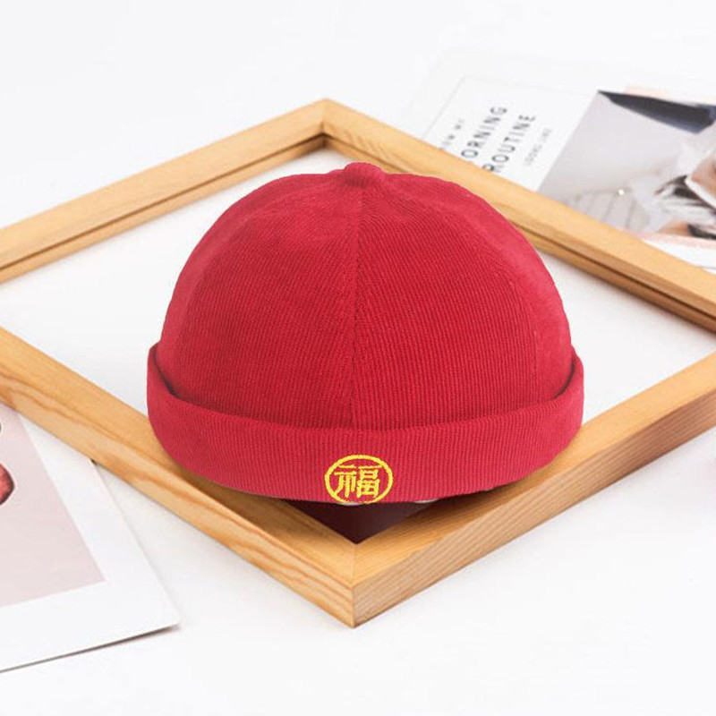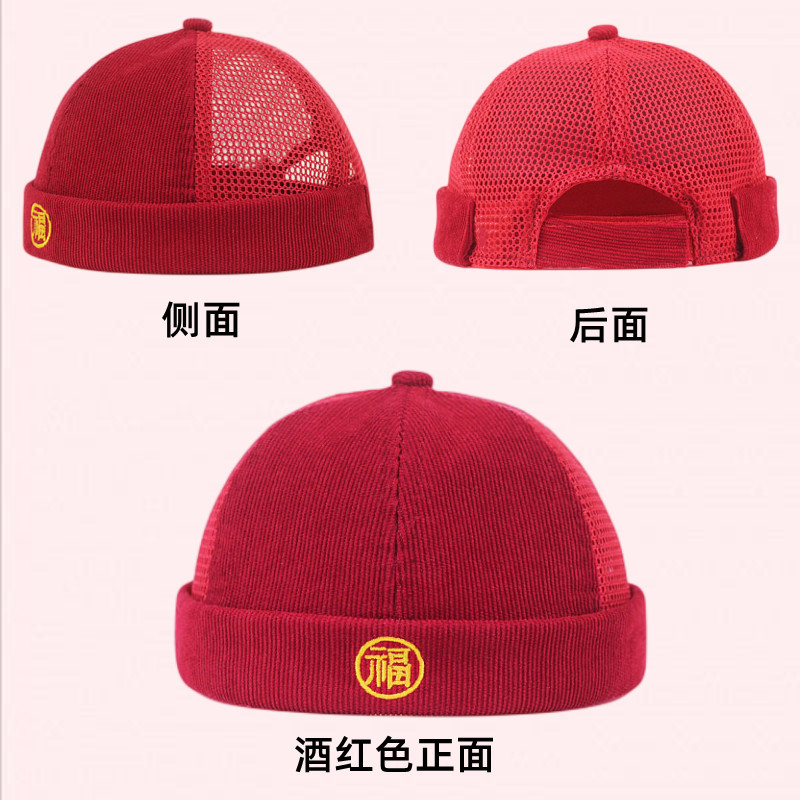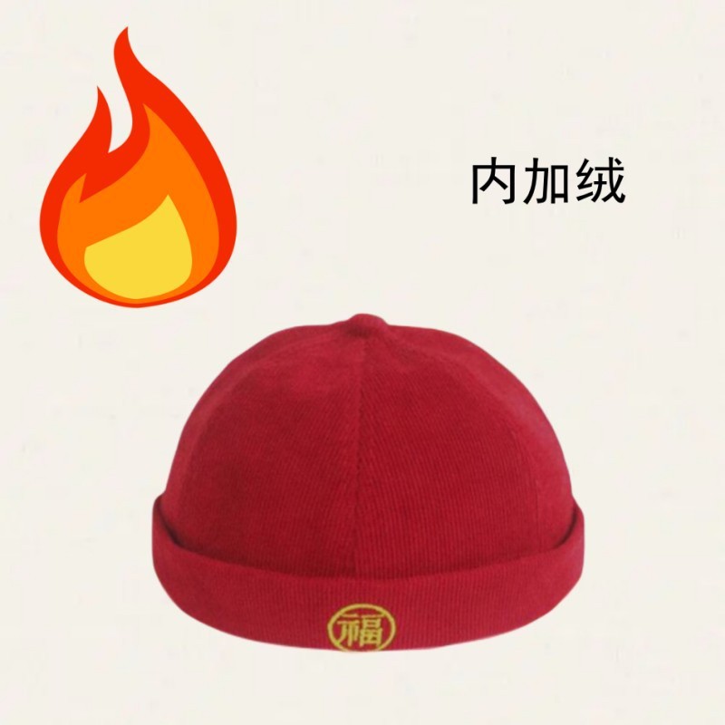 Guofeng 아기의 캐치 위크 모자 한 살짜리 어린이 탱 원피스 모자 소년 및 어린이 빈이없는 베레모 빨간 턴 업 바닥 모자