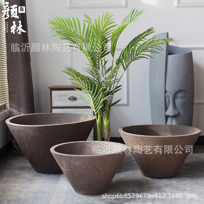 트럼펫 꽃 그릇 오픈 큰 꽃 냄비 석기 풍경 조합 꽃 냄비 큰 직경 플래터 큰 냄비 풍경 큰 냄비스토어 가기