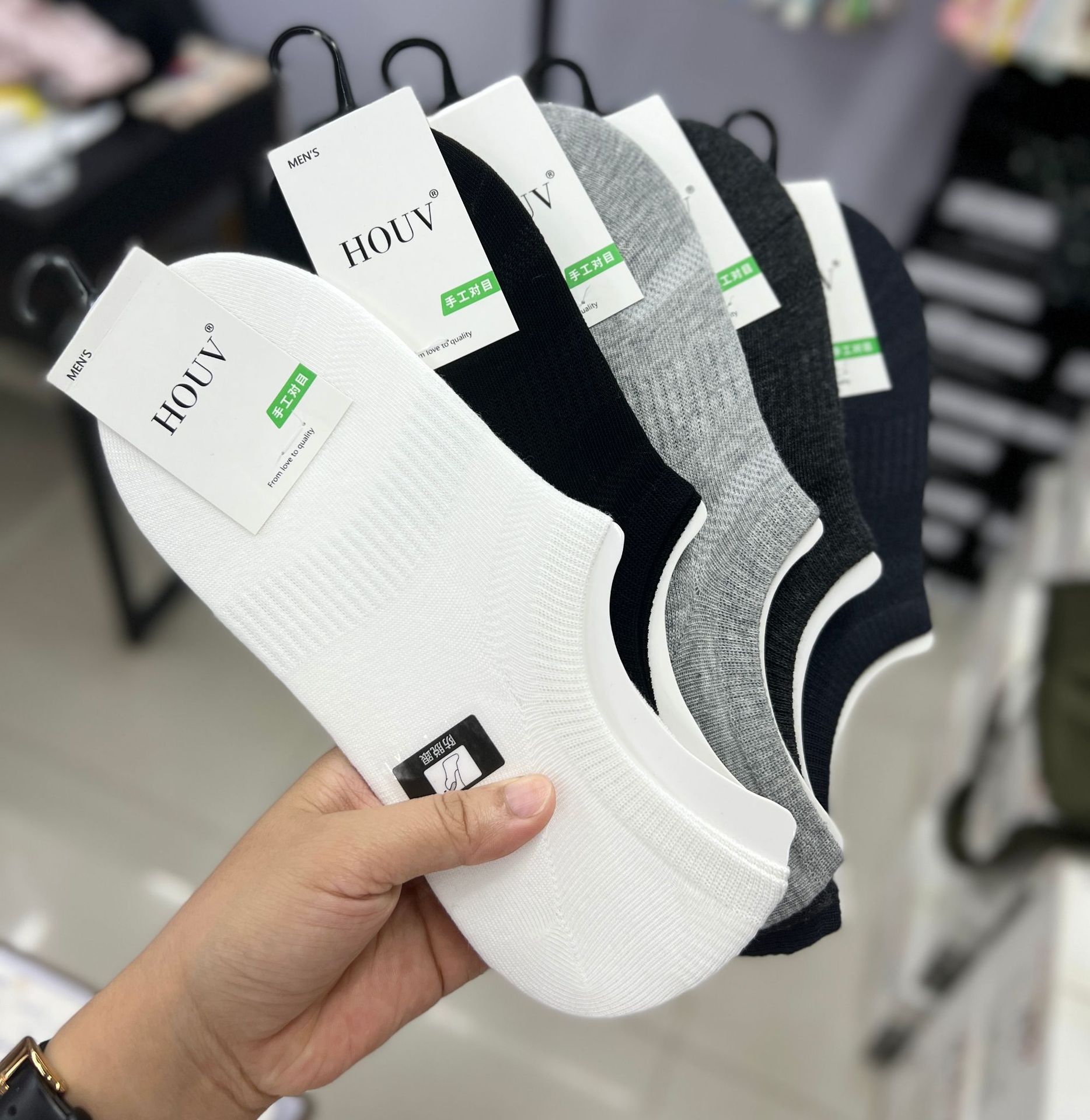 HOUV 여름 얇은 남성용 보트 양말 메쉬 통기성 단색 보이지 않는 양말 낮은 미끄럼 방지 얕은 양말스토어 가기