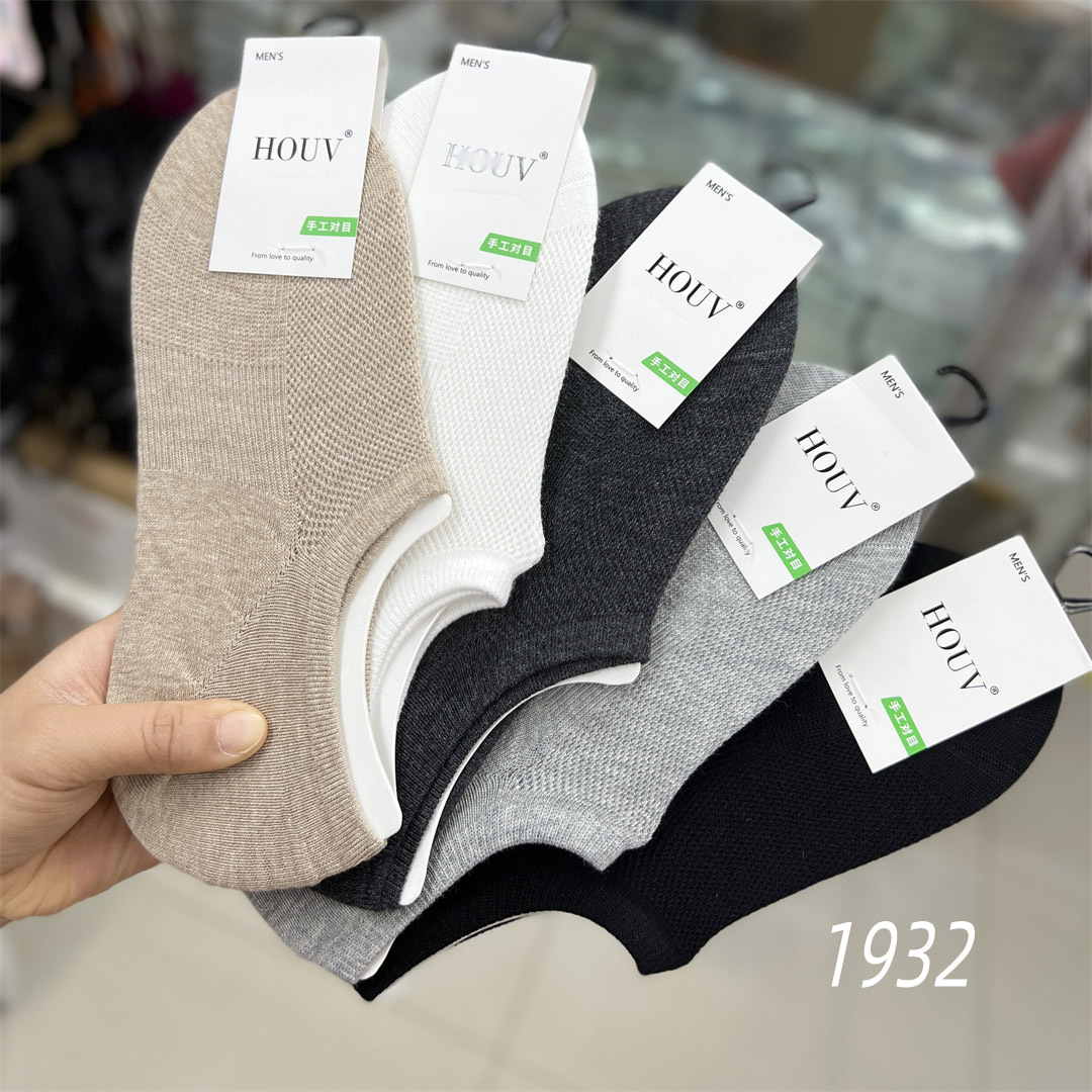 HOUV 여름 얇은 남성용 보트 양말 메쉬 통기성 단색 보이지 않는 양말 낮은 미끄럼 방지 얕은 양말