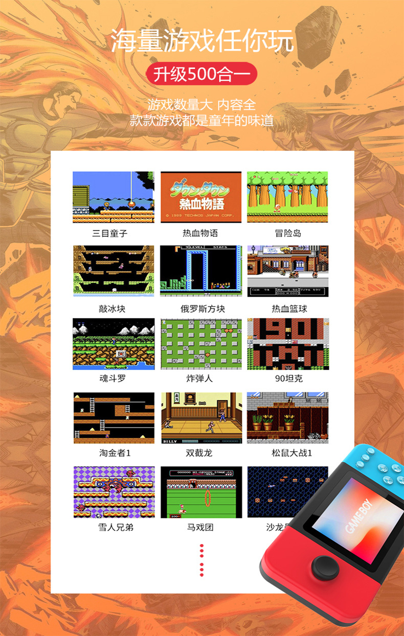500-in-one 휴대용 어린이 레트로 그리운 미니 받침대 휴대용 게임기 더블 비디오 TV 핸드헬드스토어 가기