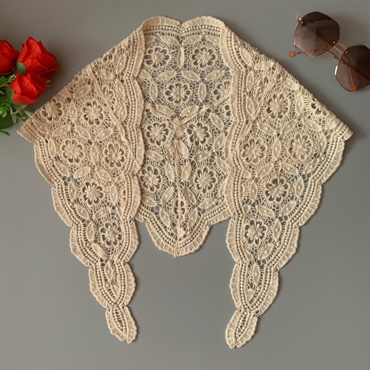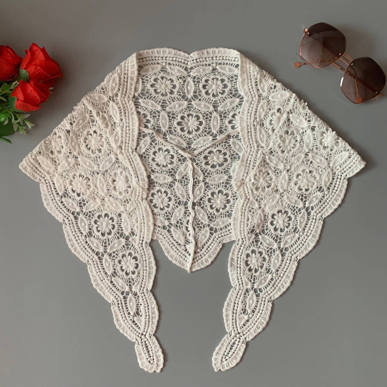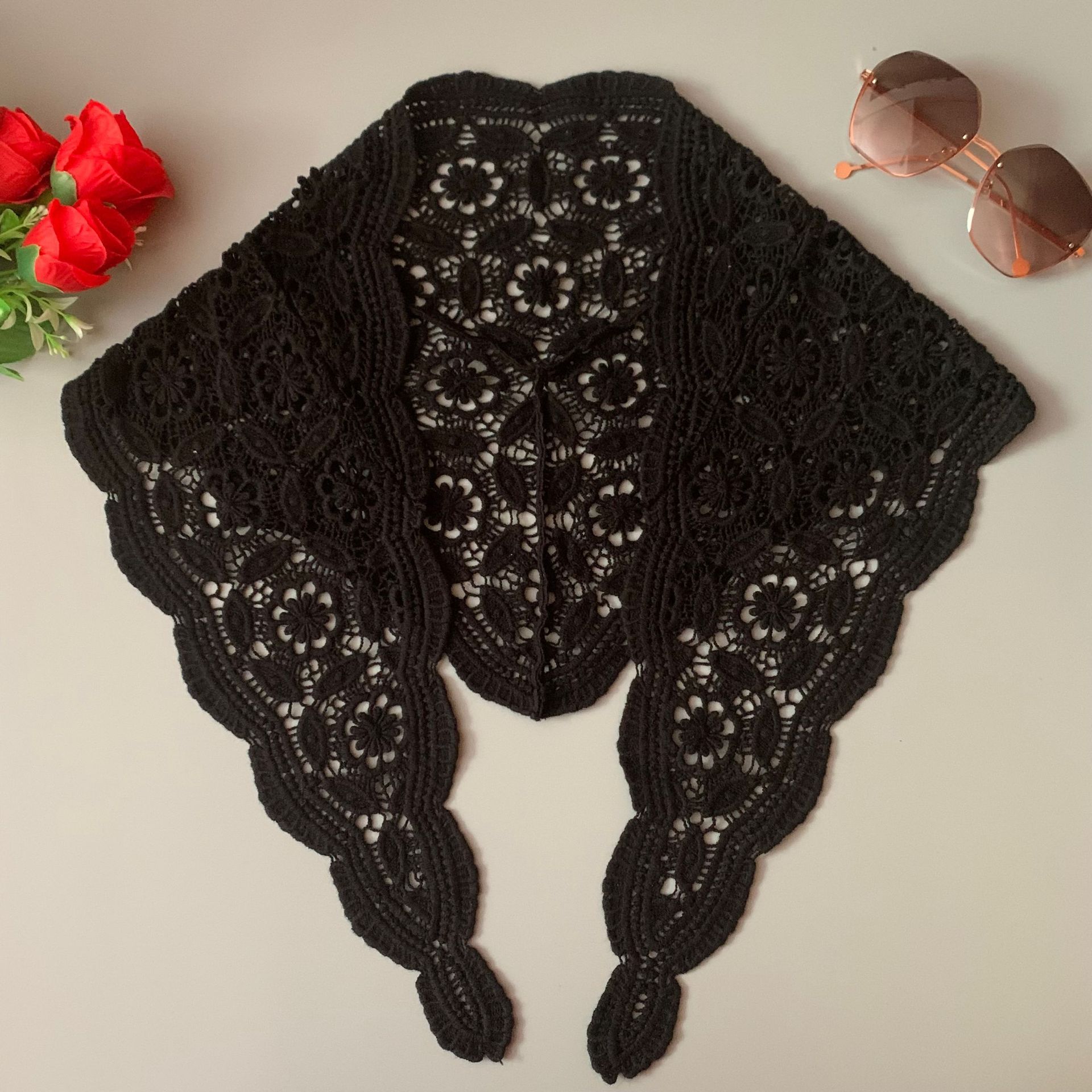 봄과 여름 새로운 한국 스타일 목도리 유행 우아한 숙녀 속이 빈 꽃 봉오리 삼각형 외부 착용 아름다운 올 매치 스카프