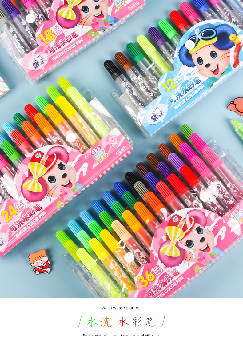 어린이 수채화 펜 세트 유치원 그림 손으로 그린 수채화 펜 수성 빨 멀티 컬러 낙서 그림 펜스토어 가기