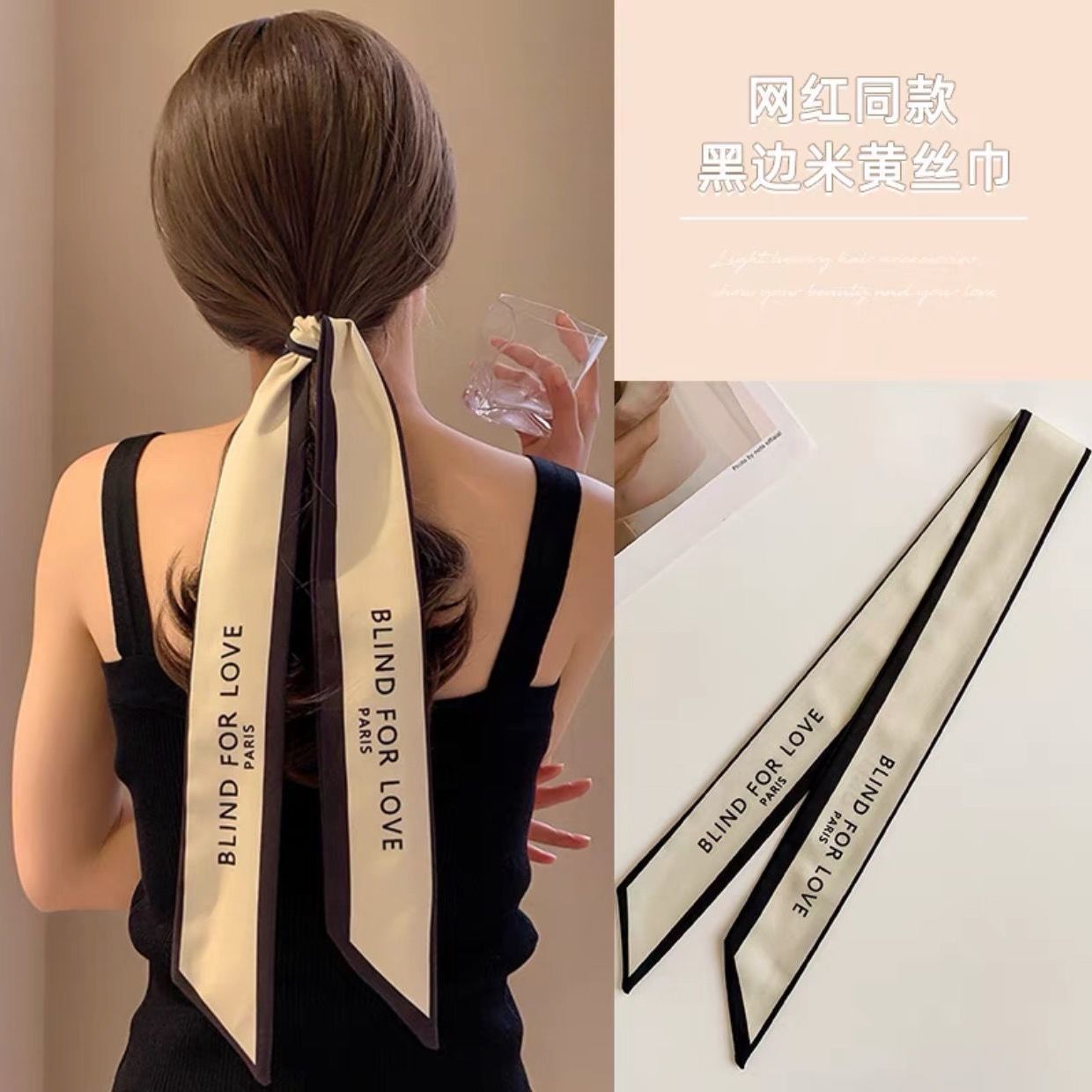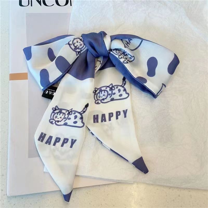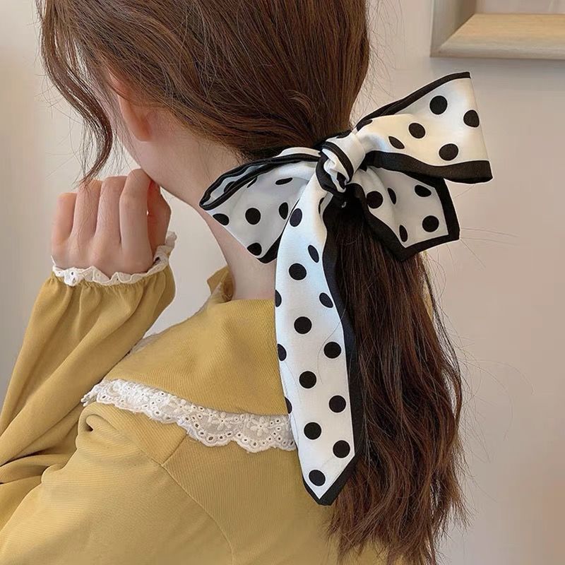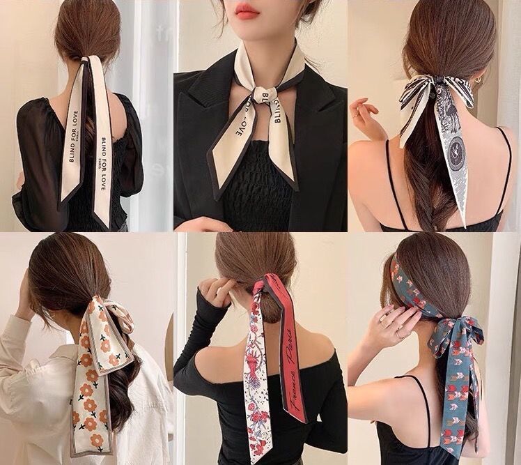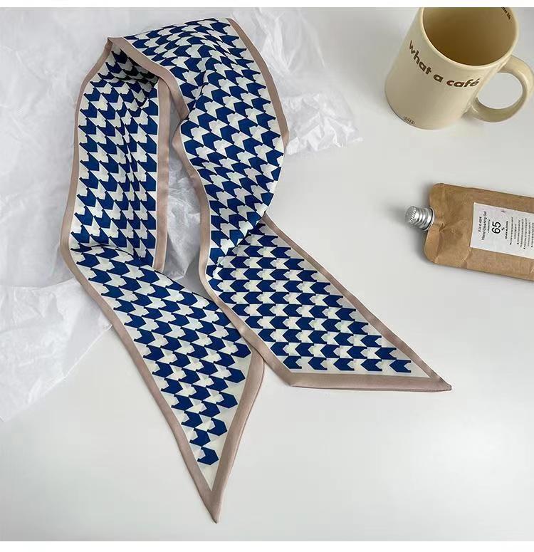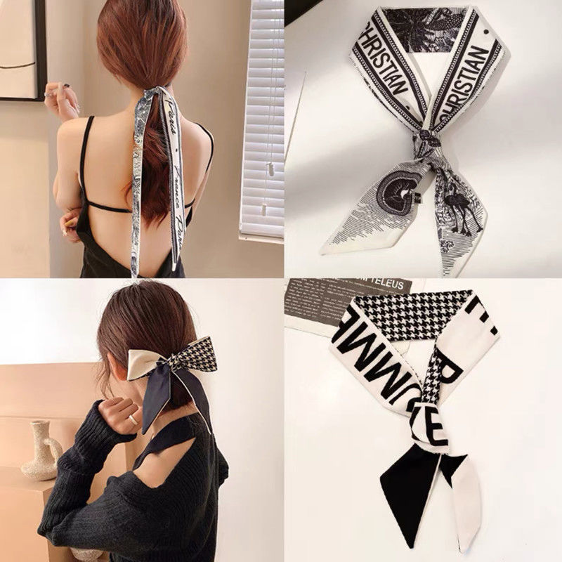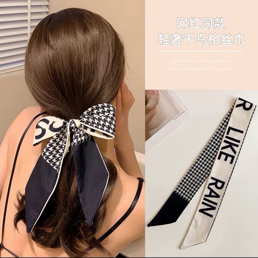 리본 헤어 밴드 in 프랑스 실크 스카프 Houndstooth 귀여운 나비 헤어 로프 스카프 동반 선물 리본 넥타이 가방 벨트