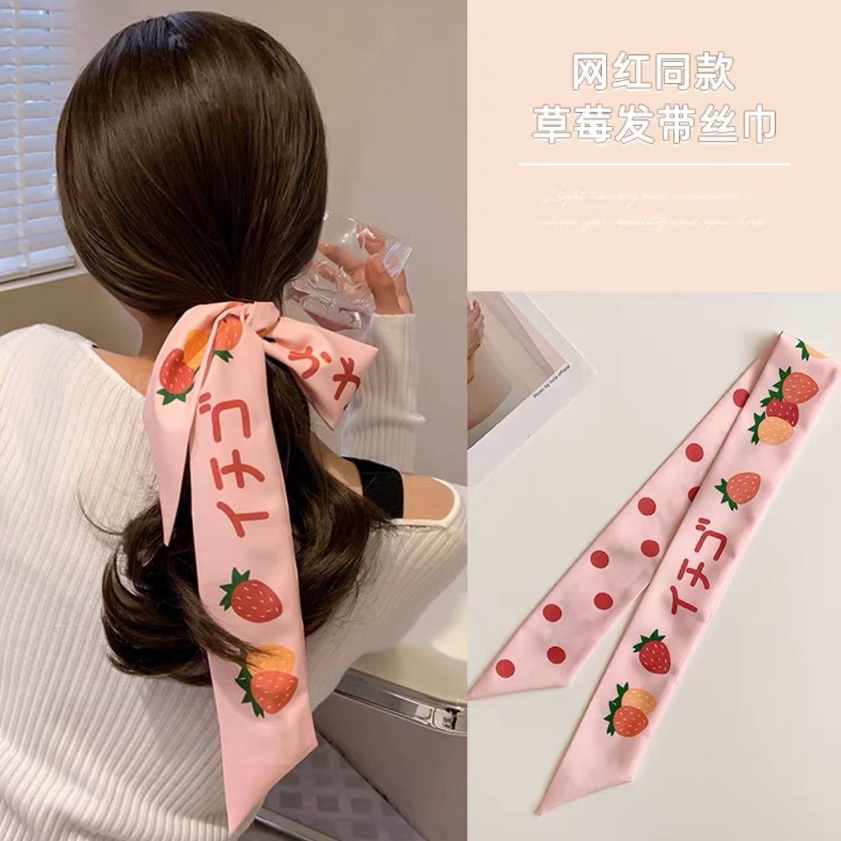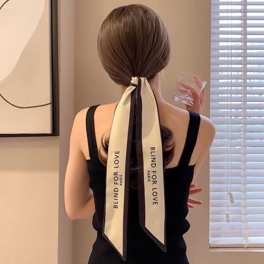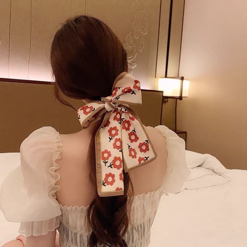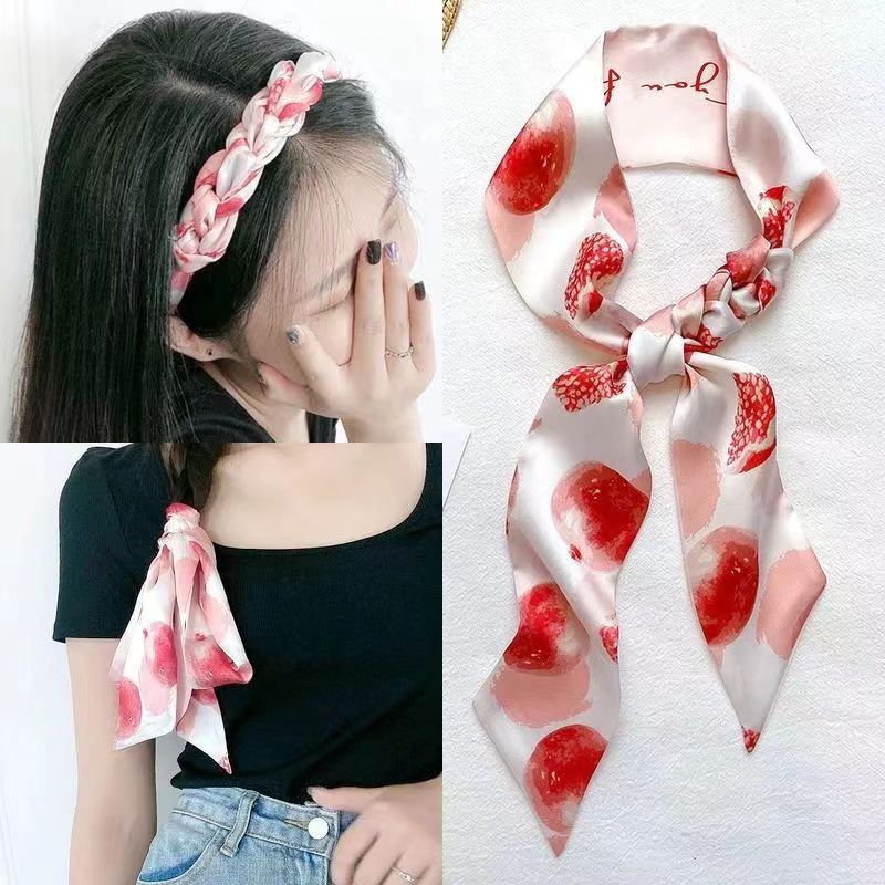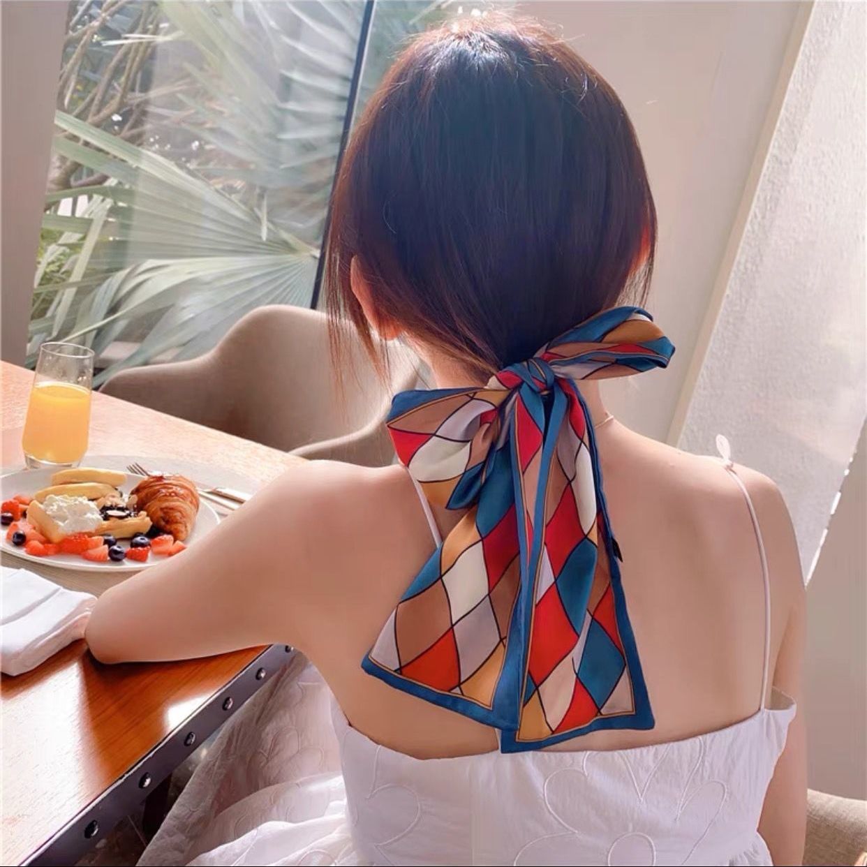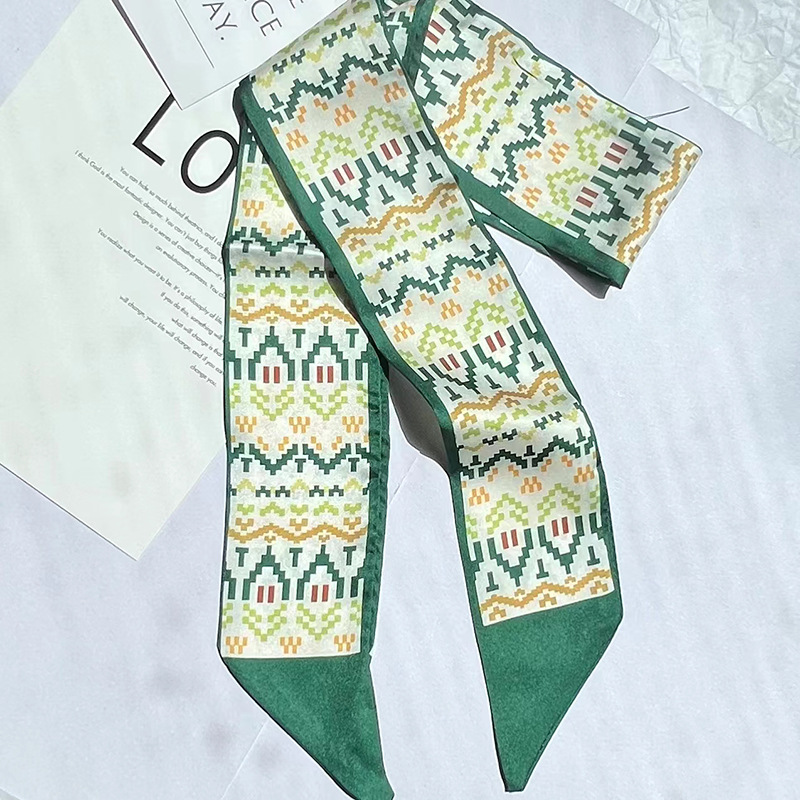 리본 헤어 밴드 in 프랑스 실크 스카프 Houndstooth 귀여운 나비 헤어 로프 스카프 동반 선물 리본 넥타이 가방 벨트