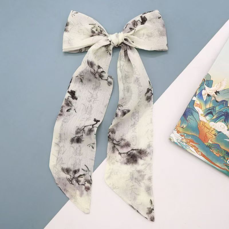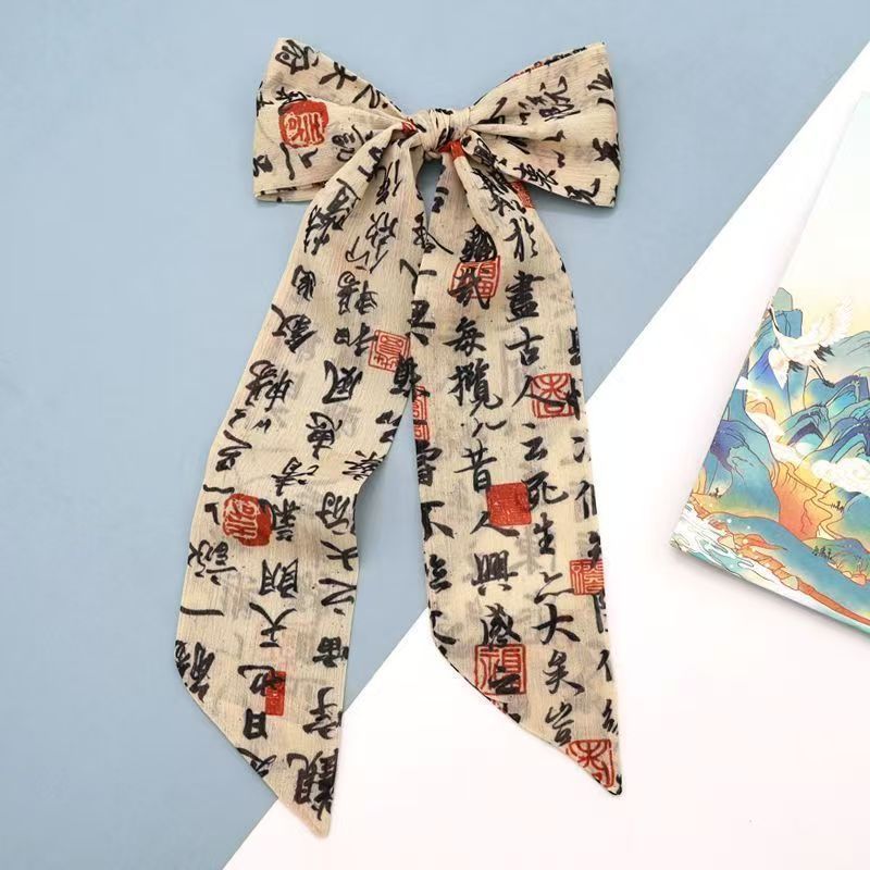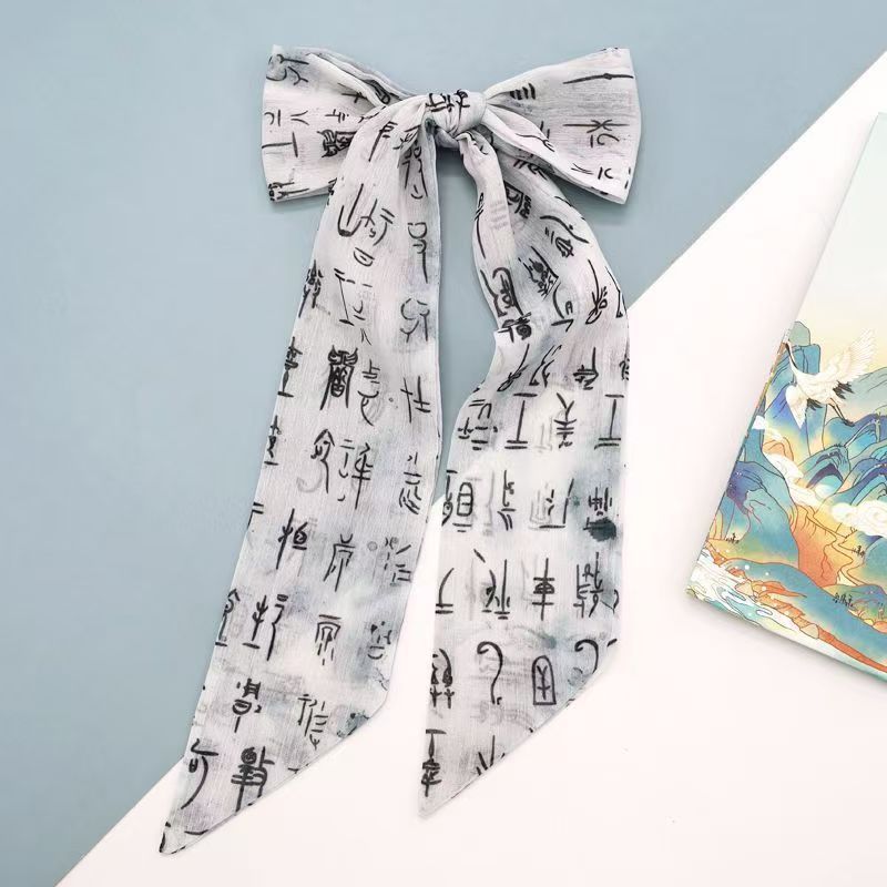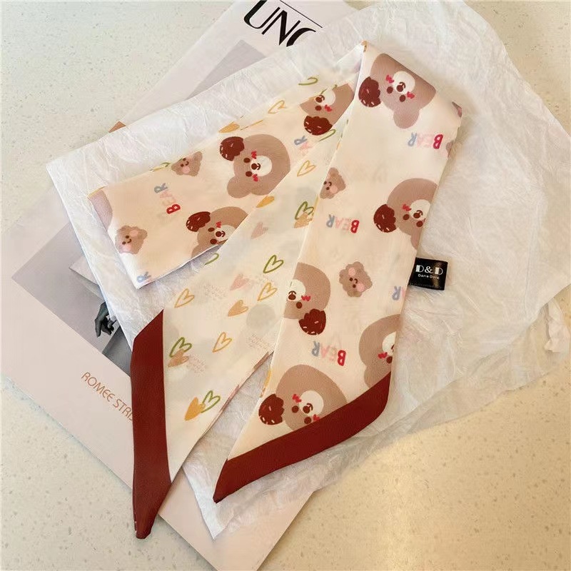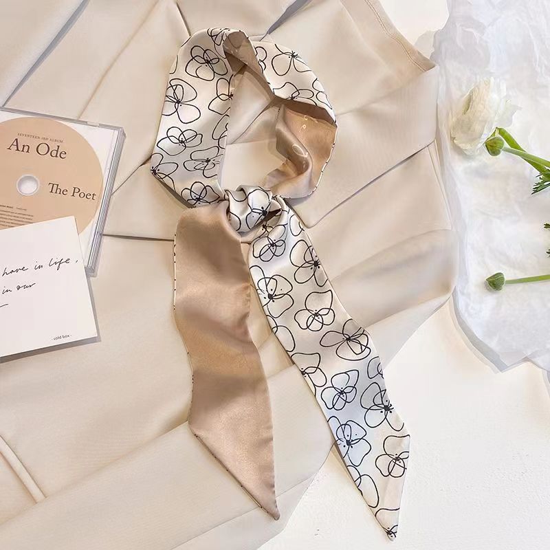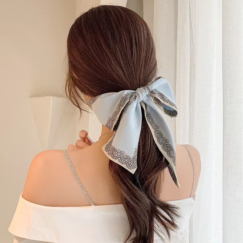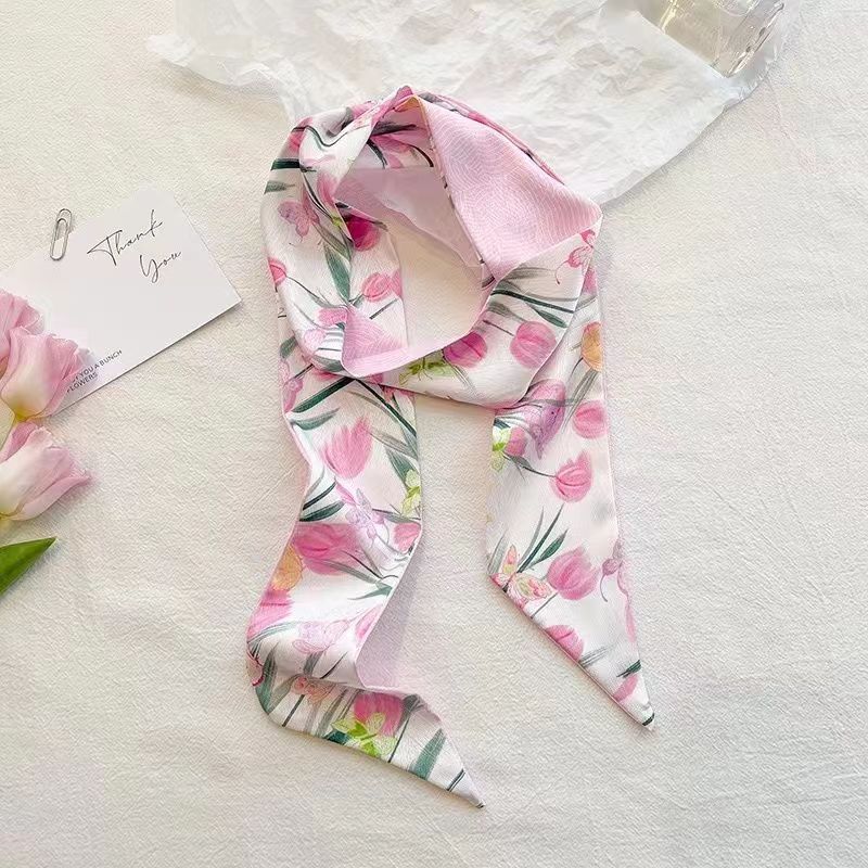 리본 헤어 밴드 in 프랑스 실크 스카프 Houndstooth 귀여운 나비 헤어 로프 스카프 동반 선물 리본 넥타이 가방 벨트