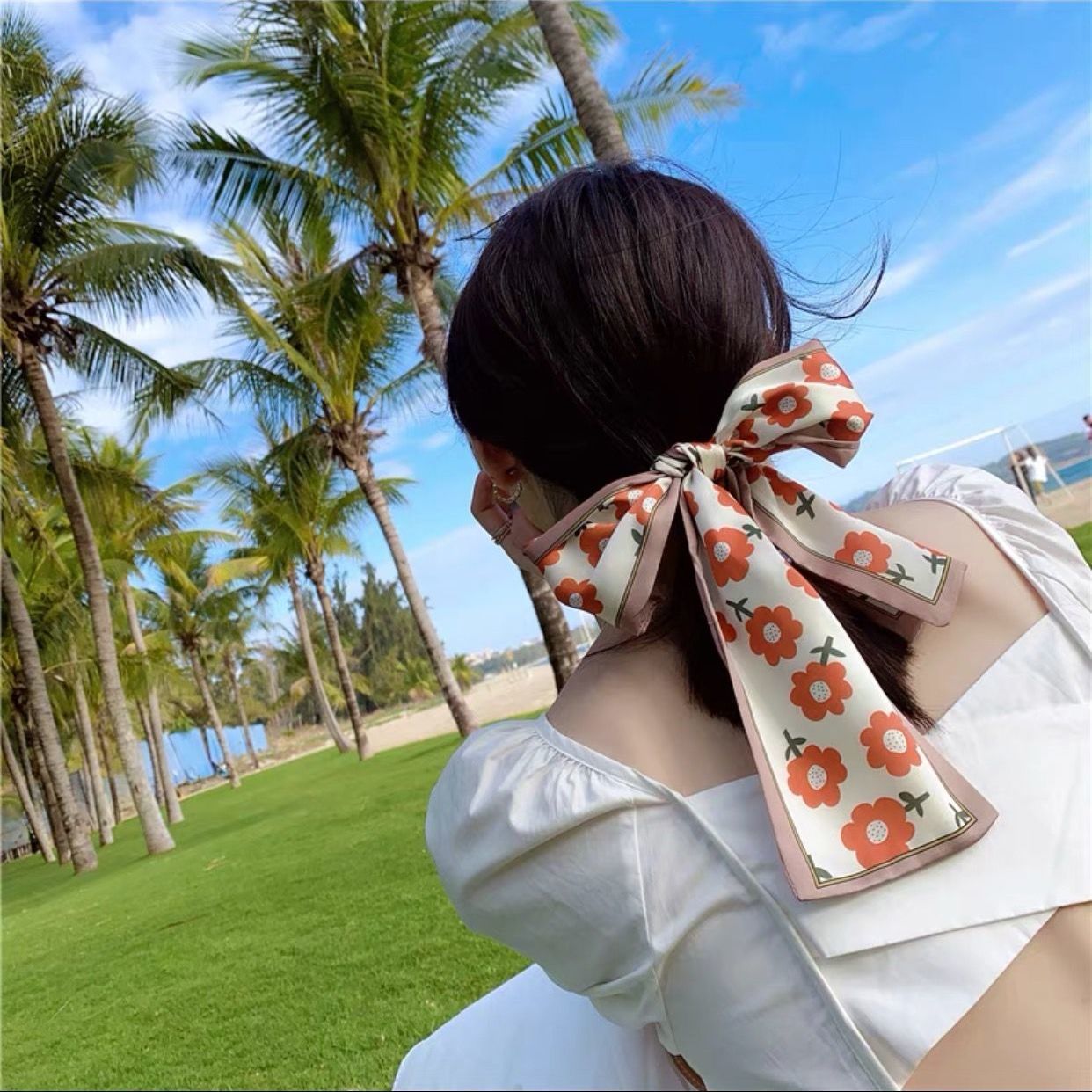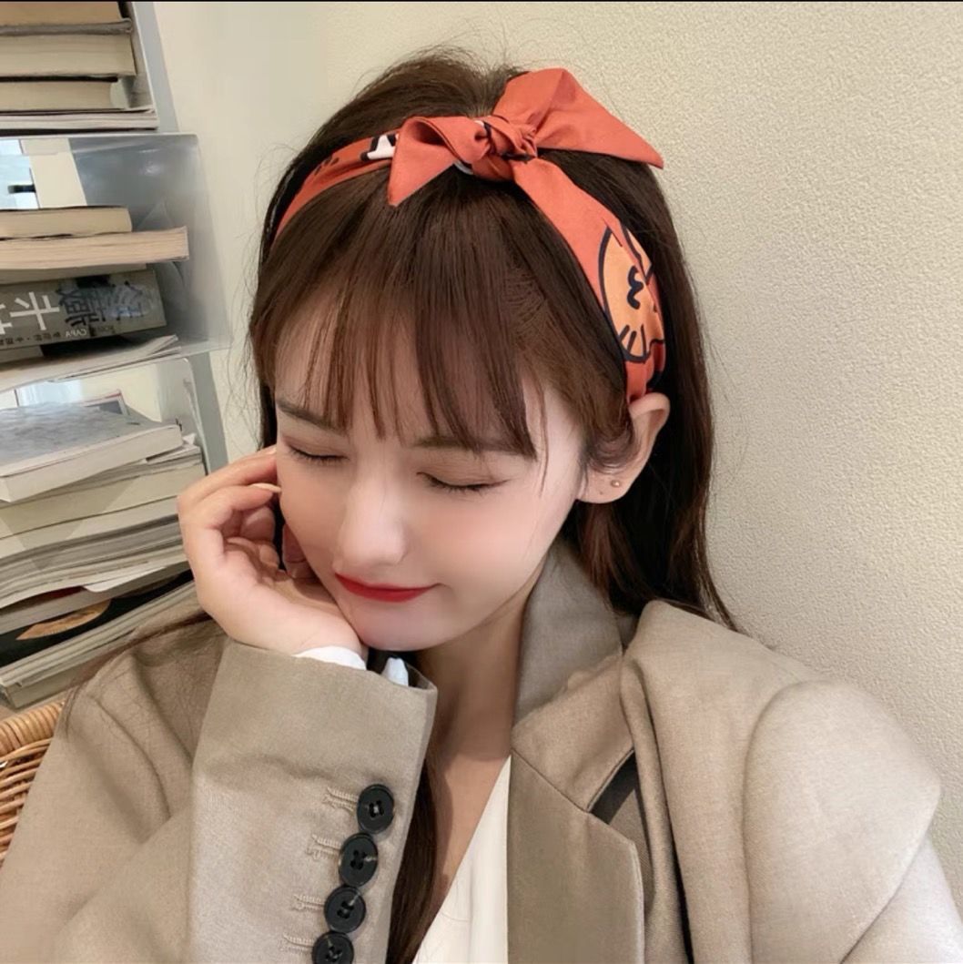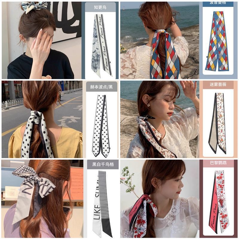 리본 헤어 밴드 in 프랑스 실크 스카프 Houndstooth 귀여운 나비 헤어 로프 스카프 동반 선물 리본 넥타이 가방 벨트스토어 가기