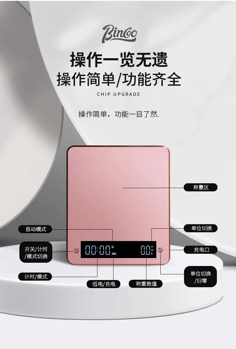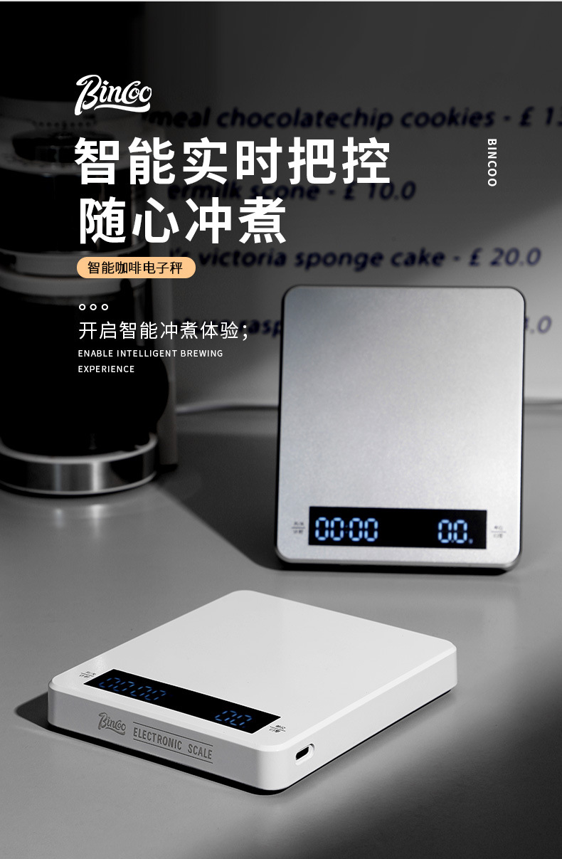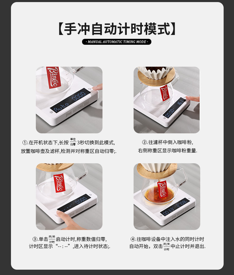 Bincoo 손 양조 커피 전자 저울 커피 콩 벤치 저울 주방 가정 소형 베이킹 측정 정밀 전자 저울