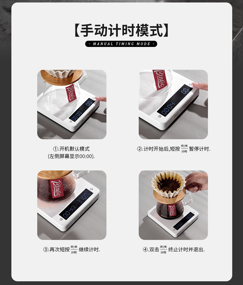 Bincoo 손 양조 커피 전자 저울 커피 콩 벤치 저울 주방 가정 소형 베이킹 측정 정밀 전자 저울스토어 가기