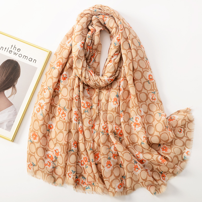봄과 여름 신선한 디지털 작은 꽃 장식 간단한 패션 목도리 여행 선 스크린 스카프면 및 린넨 느낌 스카프스토어 가기