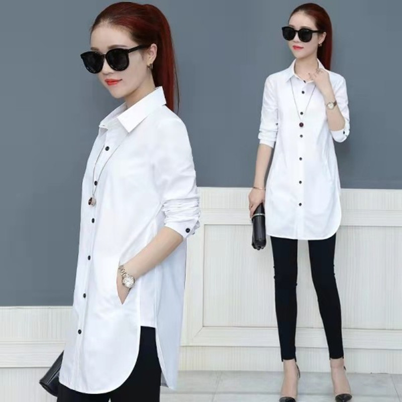 2025 셔츠 여성 봄 중간 길이 레이어드 내부 레이어링 셔츠 대형 디자인 캐주얼 화이트 셔츠 여성용스토어 가기