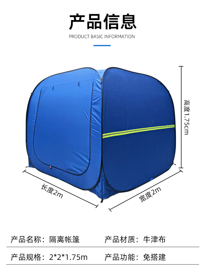 비상 구호 임시 격리 텐트 접이식 2 미터 대형 공간 격리 사이트 그늘 물 차단 옥스포드 천 텐트