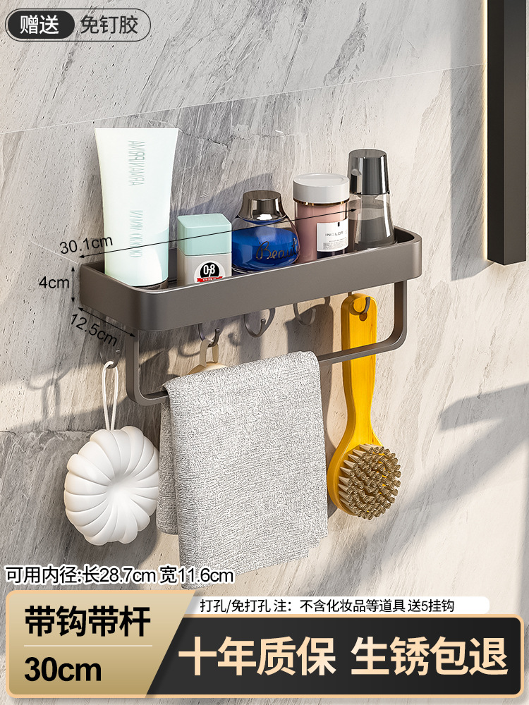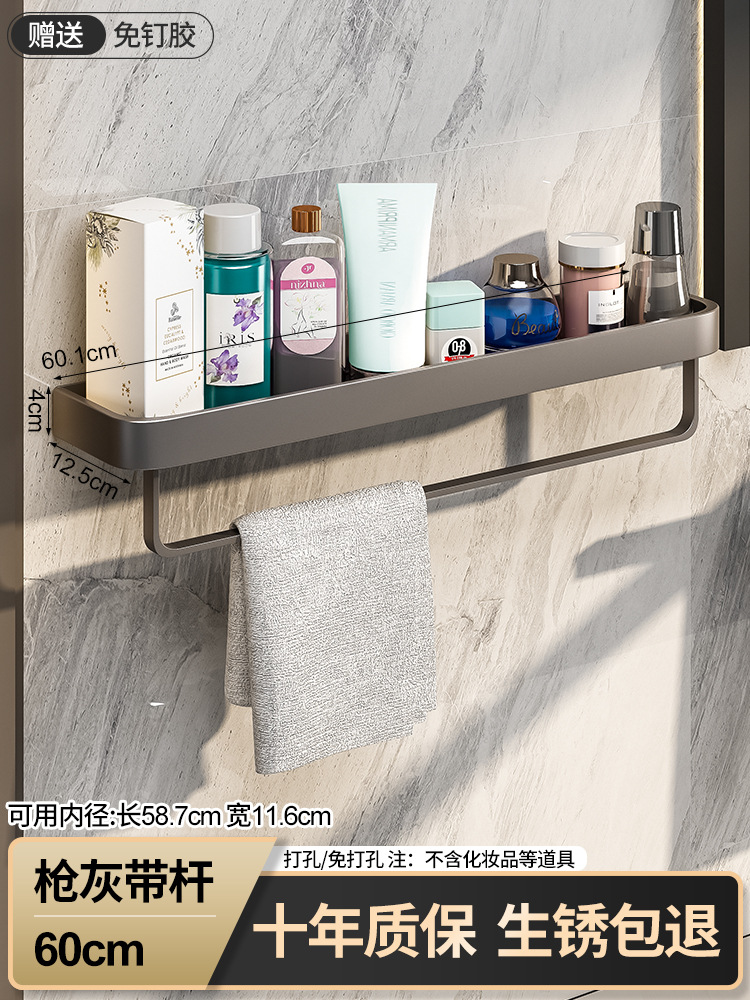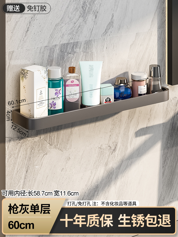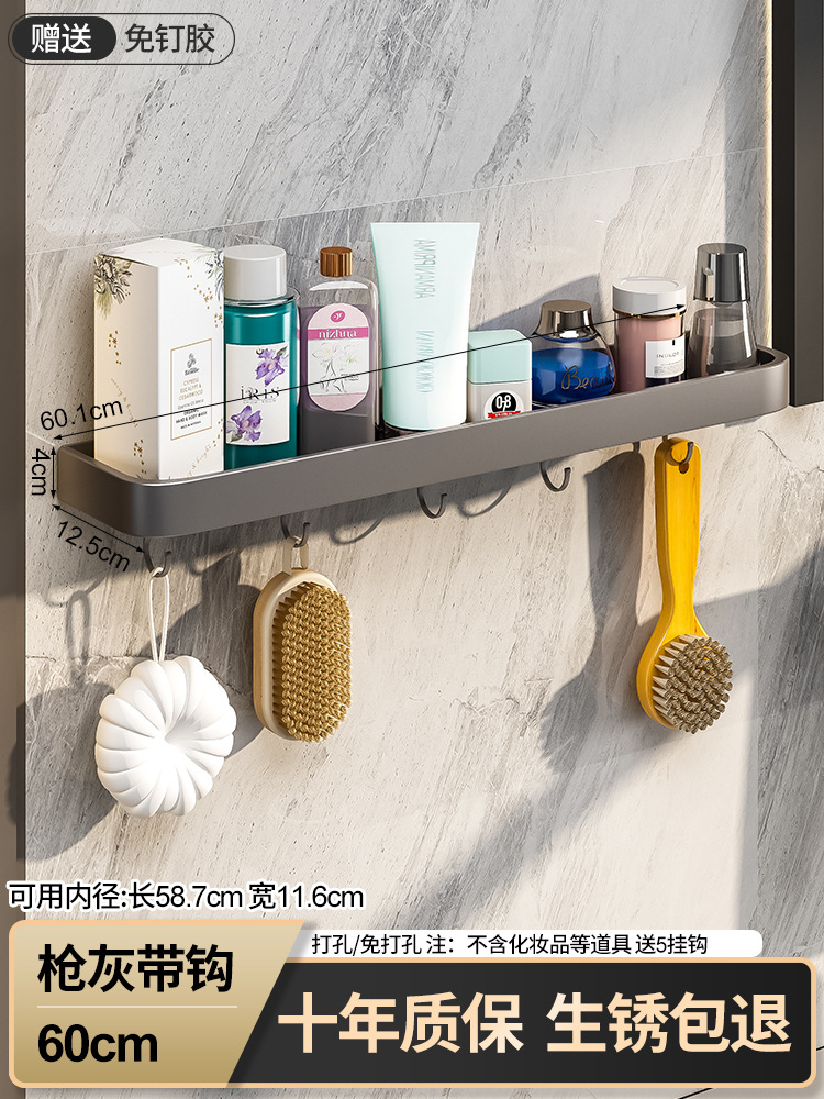 건 그레이 욕실 수납 랙 펀치 프리 벽걸이 형 화장실 조명 고급 수납 랙 공간 알루미늄 세면도구 랙 수납 랙스토어 가기