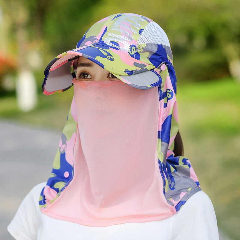 자외선 차단제 모자 여성용 여름 얼굴 커버 얼굴 커버 자외선 차단 차양 모자 야외 속건 베일 접는 태양 모자