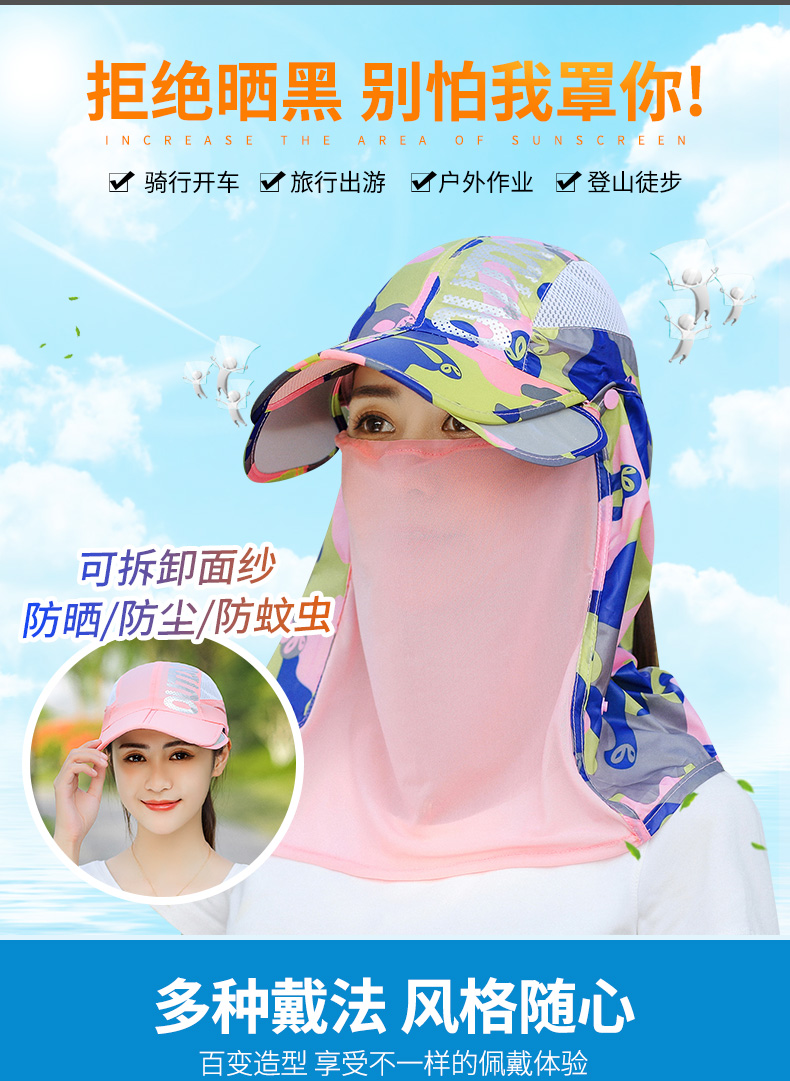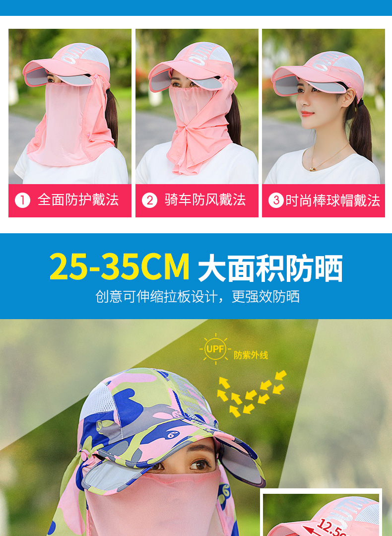 자외선 차단제 모자 여성용 여름 얼굴 커버 얼굴 커버 자외선 차단 차양 모자 야외 속건 베일 접는 태양 모자스토어 가기