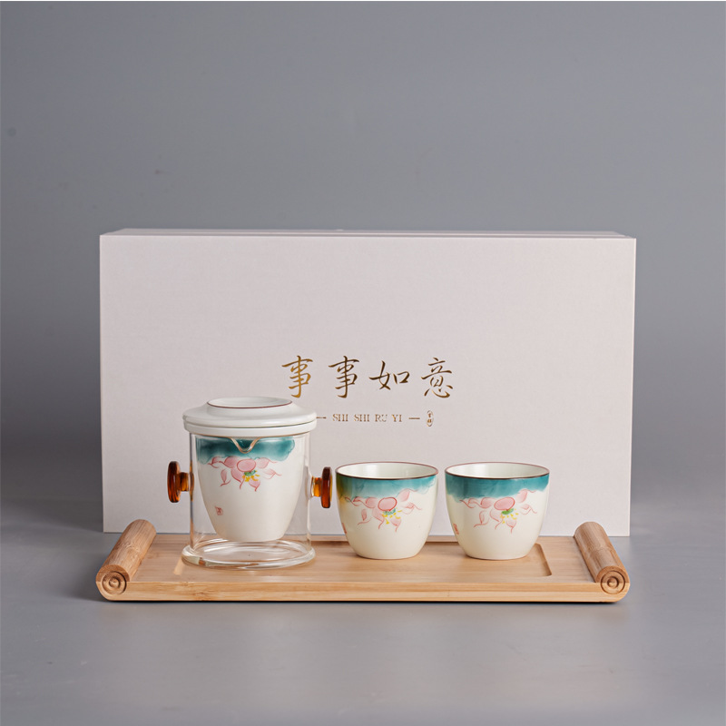 쿵푸 차 세트 간단한 손으로 그린 티 컵 한 냄비 두 컵 작은 세트 차 세트 선물 상자 세트 주전자 세라믹 중국 스타일스토어 가기
