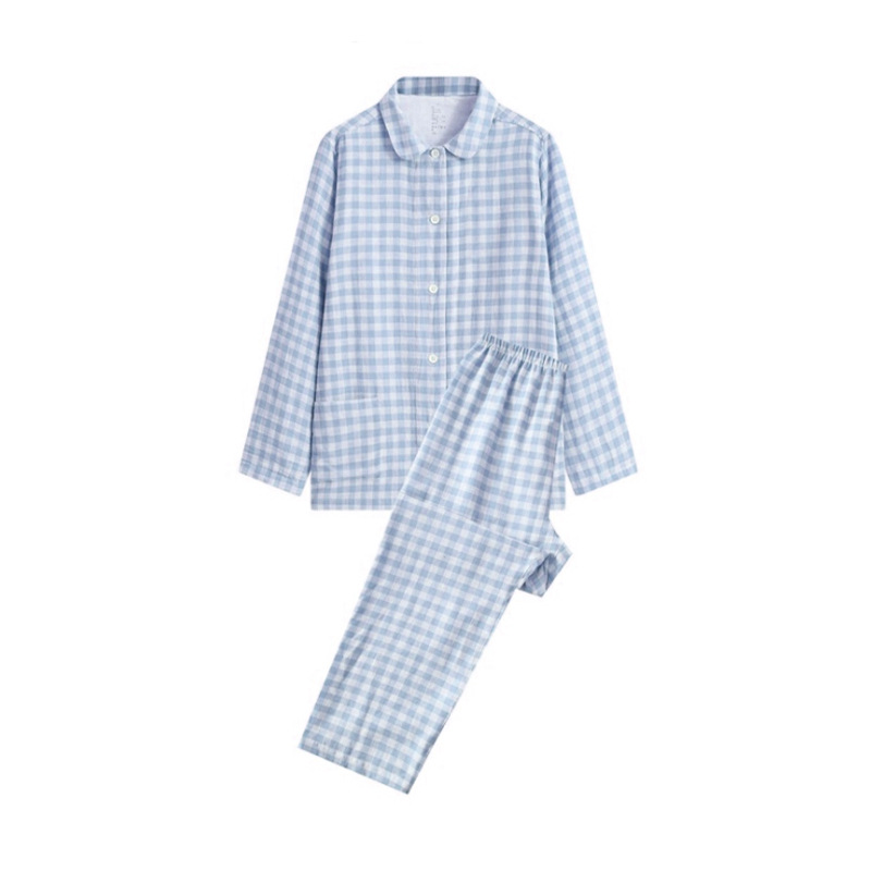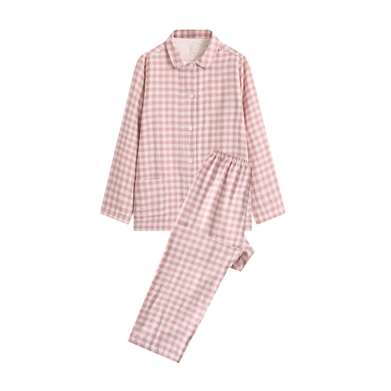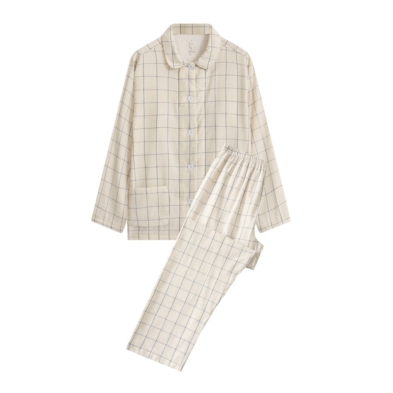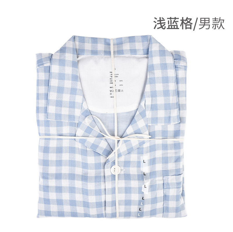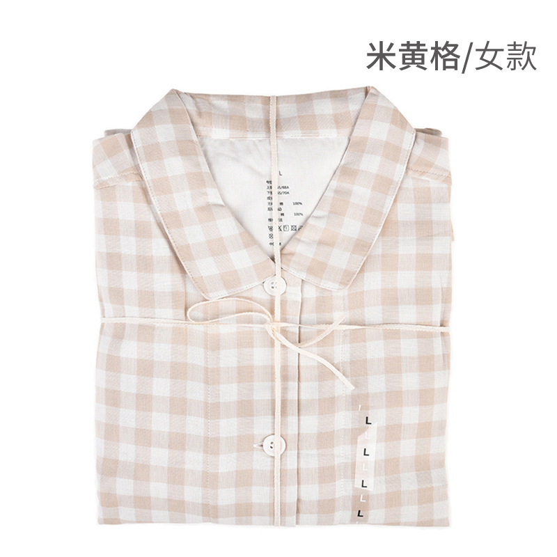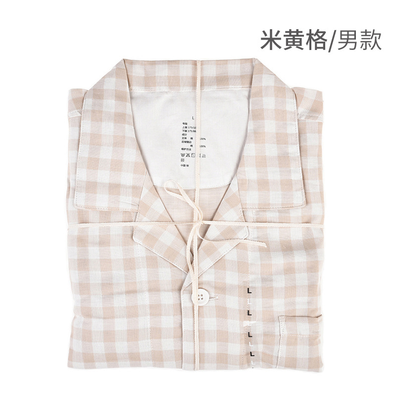 남성과 여성을 위한 일본식 무봉제 사이드 심 파자마, 면 더블 레이어 원사 홈웨어 세트, 봄 여름 격자 무늬 얇은 아우터웨어스토어 가기