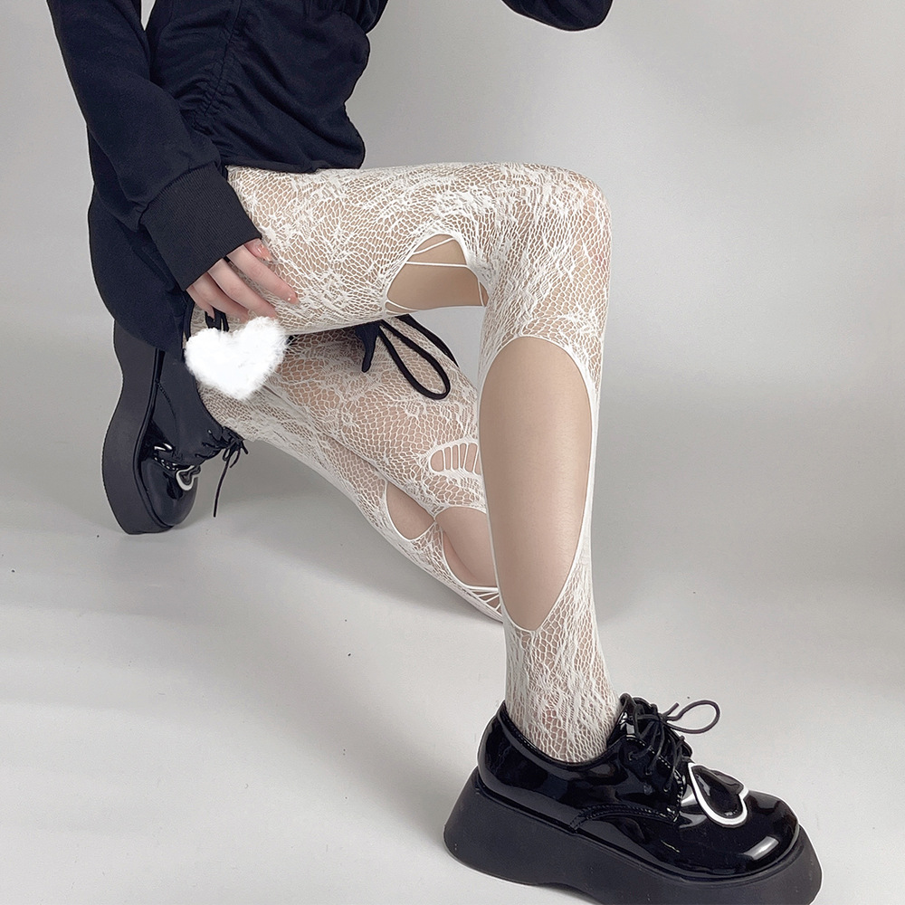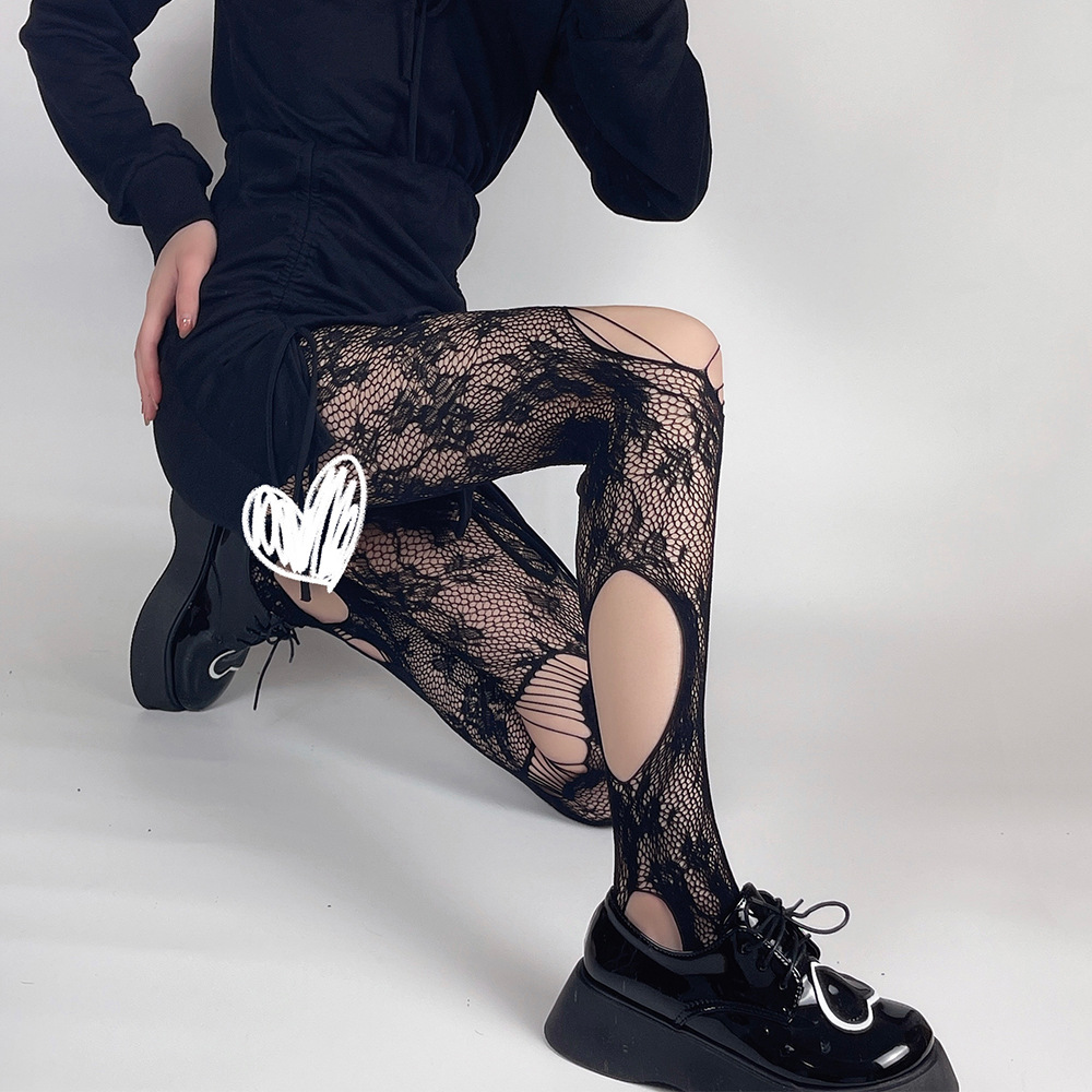 순수한 욕망 스타일 섹시한 뜨거운 소녀 손을 찢다 빈 구멍 망사 스타킹 검은 스타킹 jk 팬티 스타킹