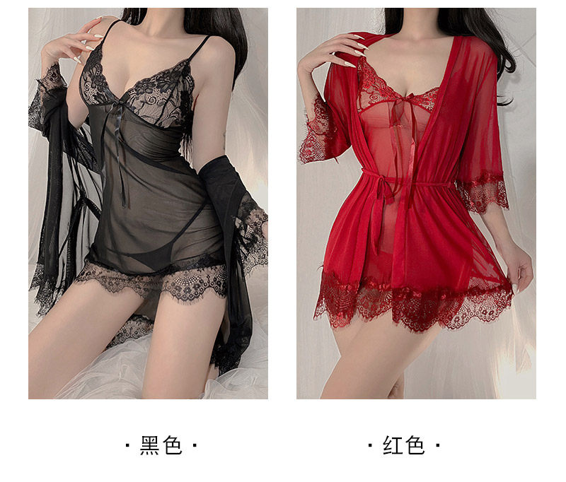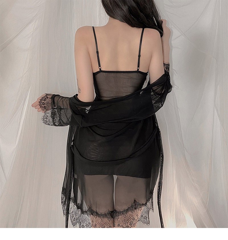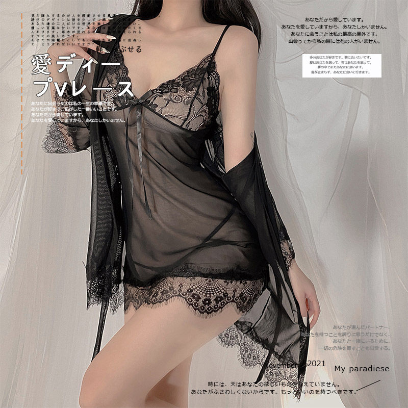 Shuo Yao 섹시한 관점 잠옷 여자의 섹시한 메쉬 투명 레이스 슬링 잠옷 가운 유혹 가정 옷 세트스토어 가기
