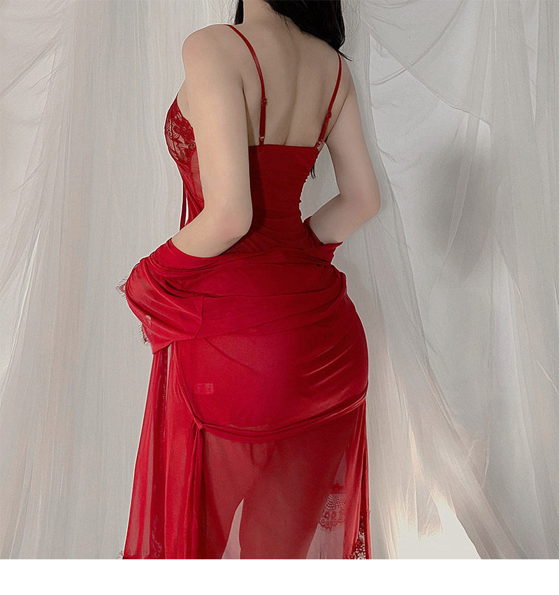 • 빨강 [잠옷 + 가운 + 벨트 + 속옷]]