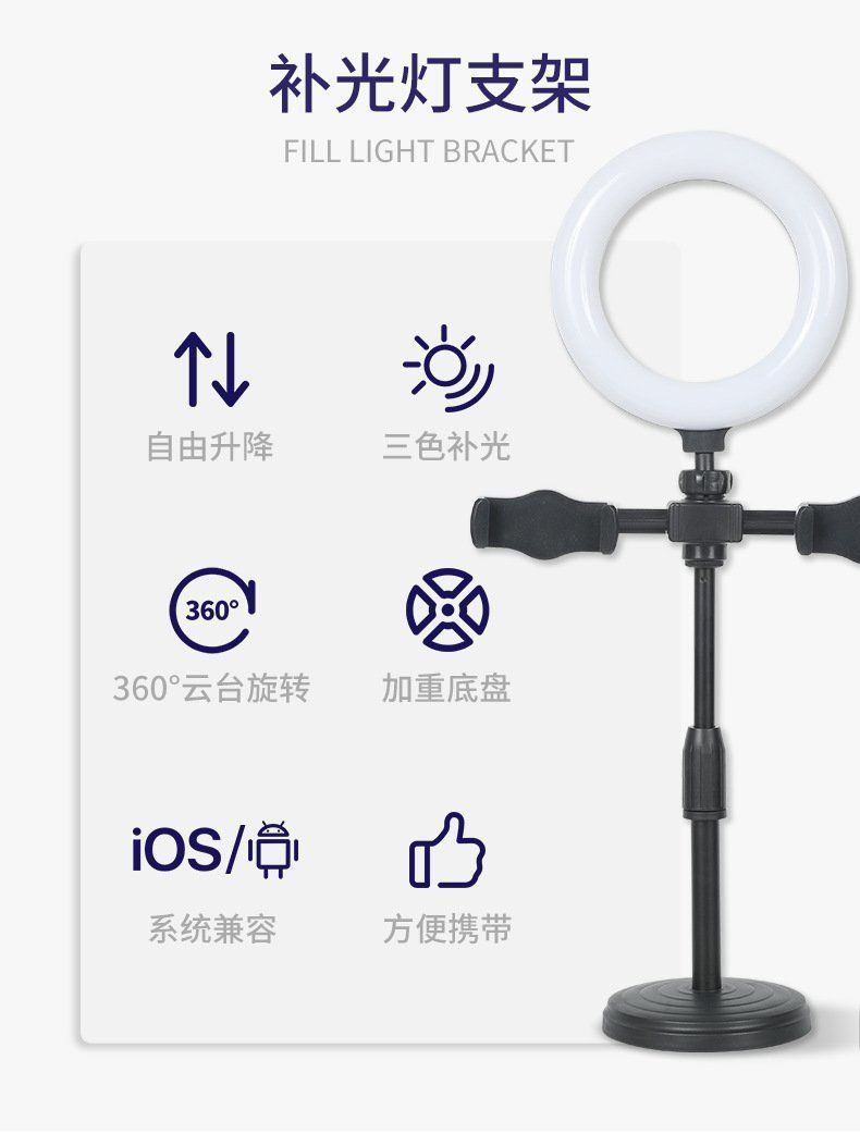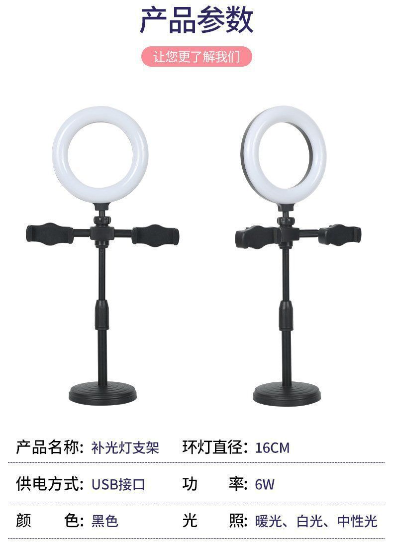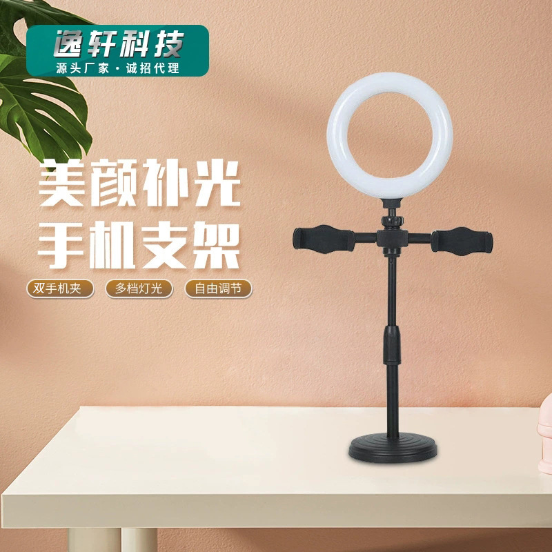 LED 채우기 빛 듀얼 휴대 전화 브래킷 라이브 삼각대 링 라이트 셀카 데스크탑 지원 도매