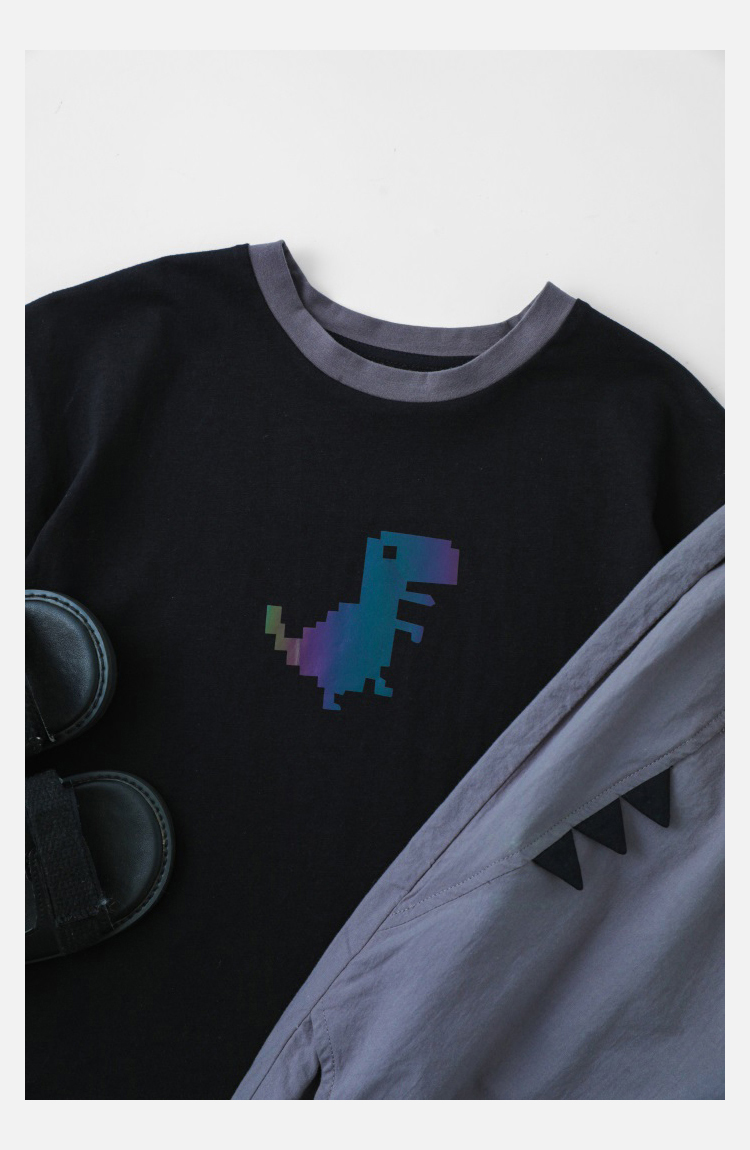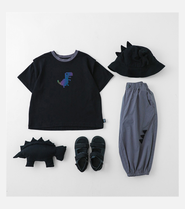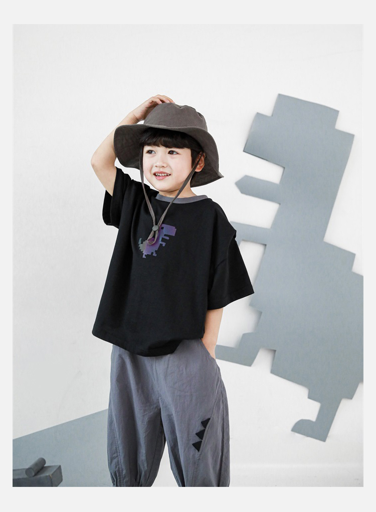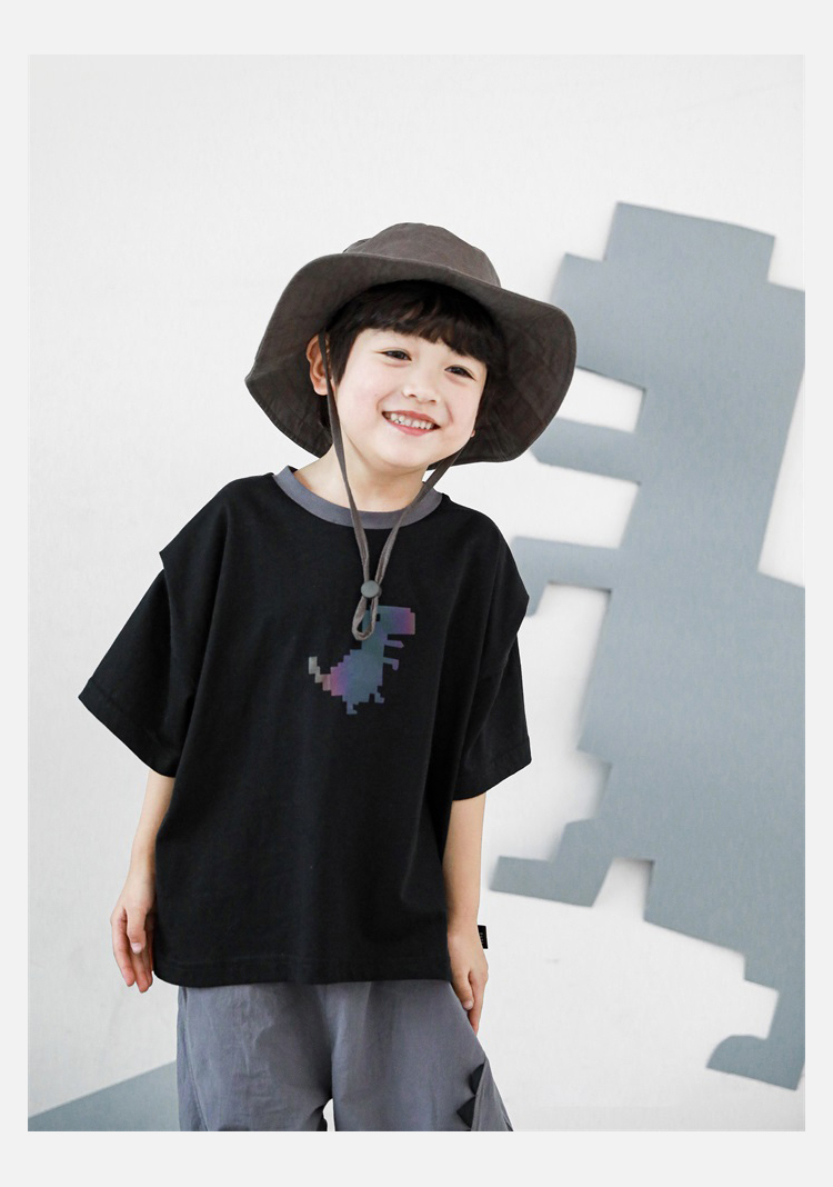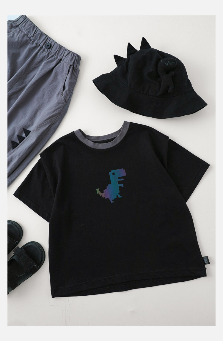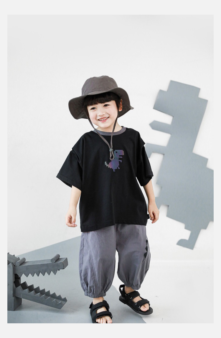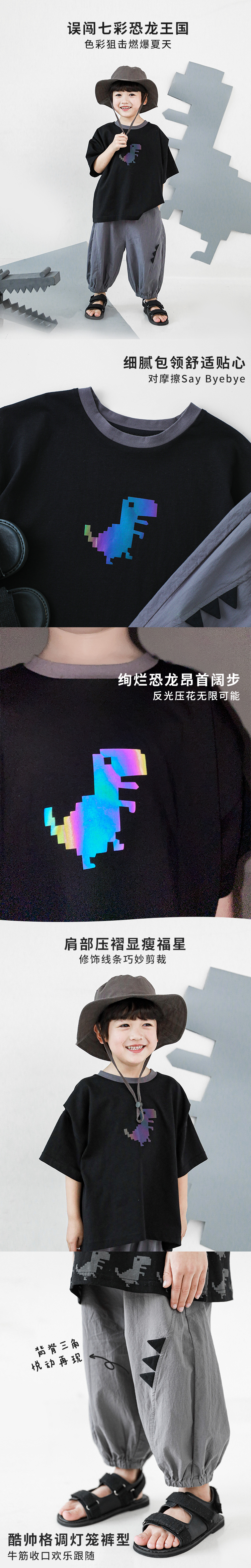 Wurib 어린이 다채로운 공룡 반사 양각 티셔츠 남성 아기 캐주얼 느슨한 얇은 바지를위한 새로운 여름 의류스토어 가기