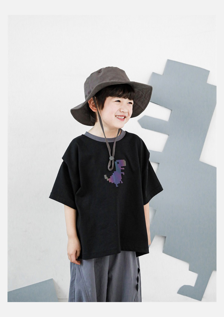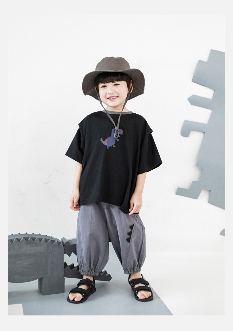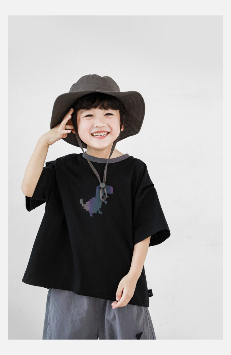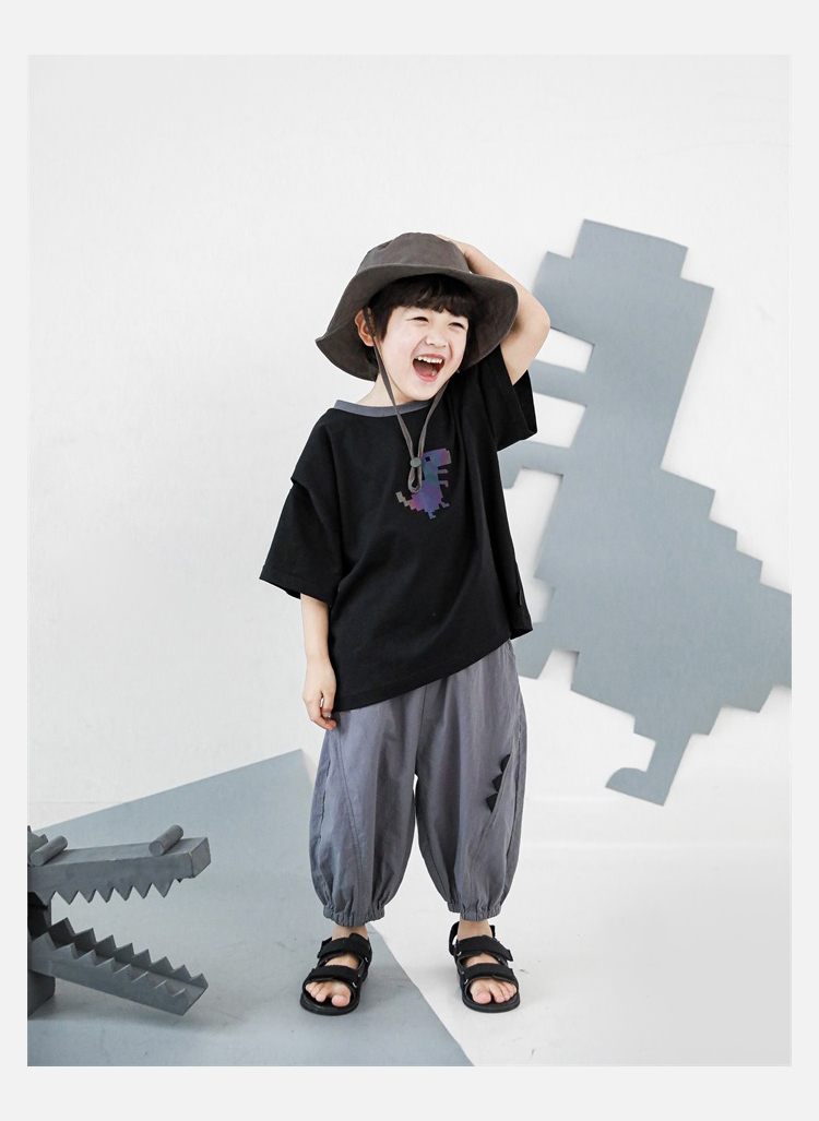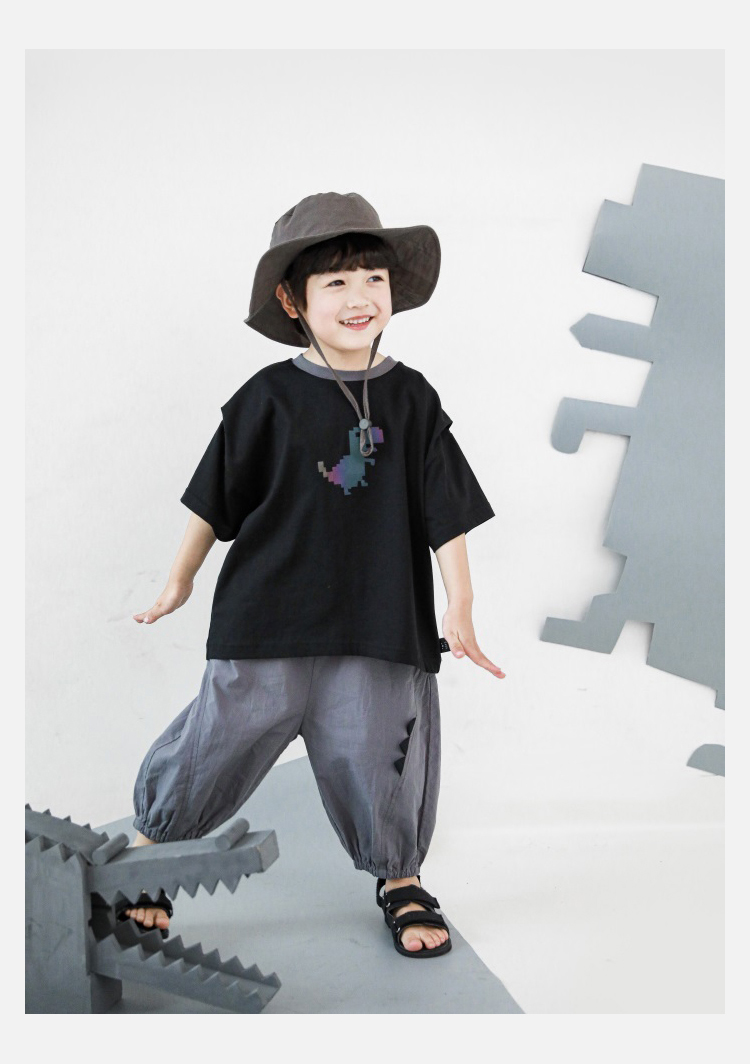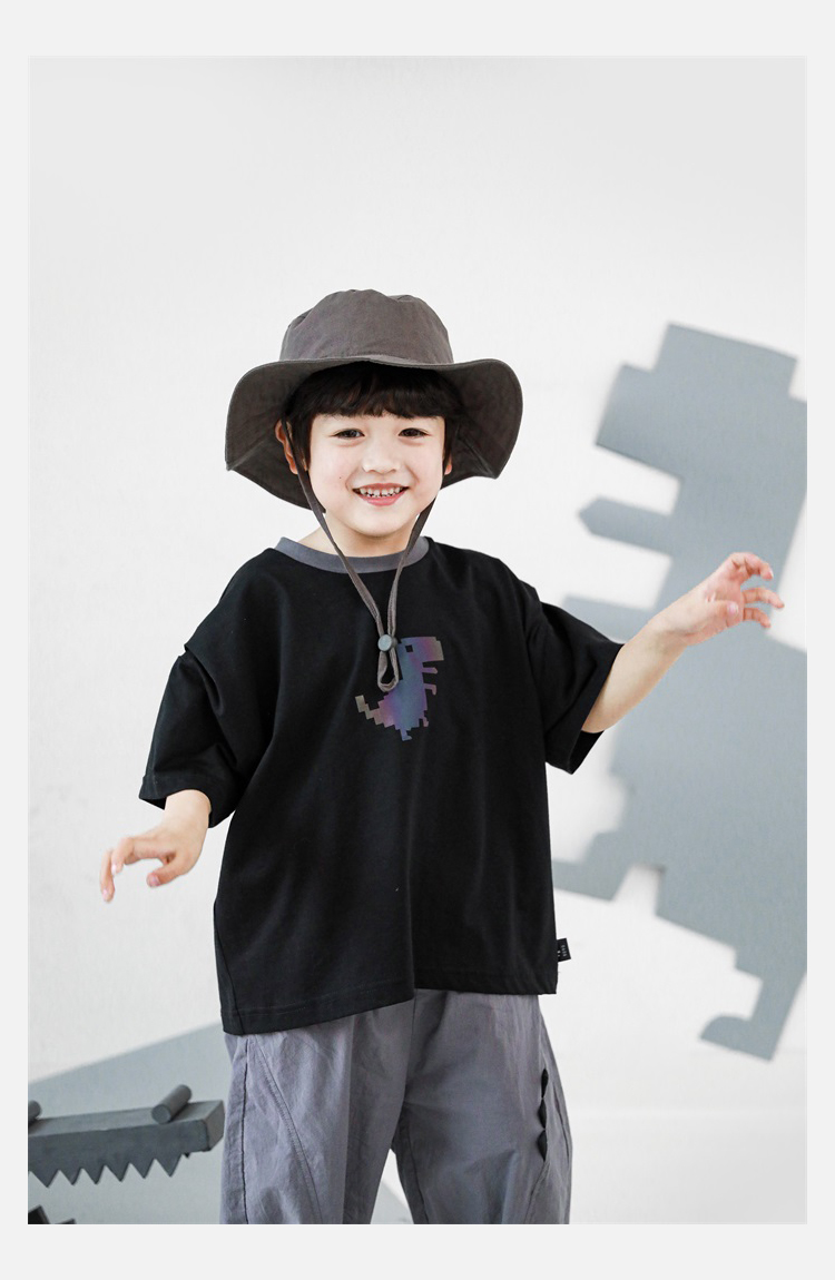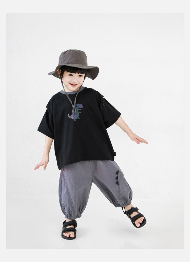 Wurib 어린이 다채로운 공룡 반사 양각 티셔츠 남성 아기 캐주얼 느슨한 얇은 바지를위한 새로운 여름 의류스토어 가기