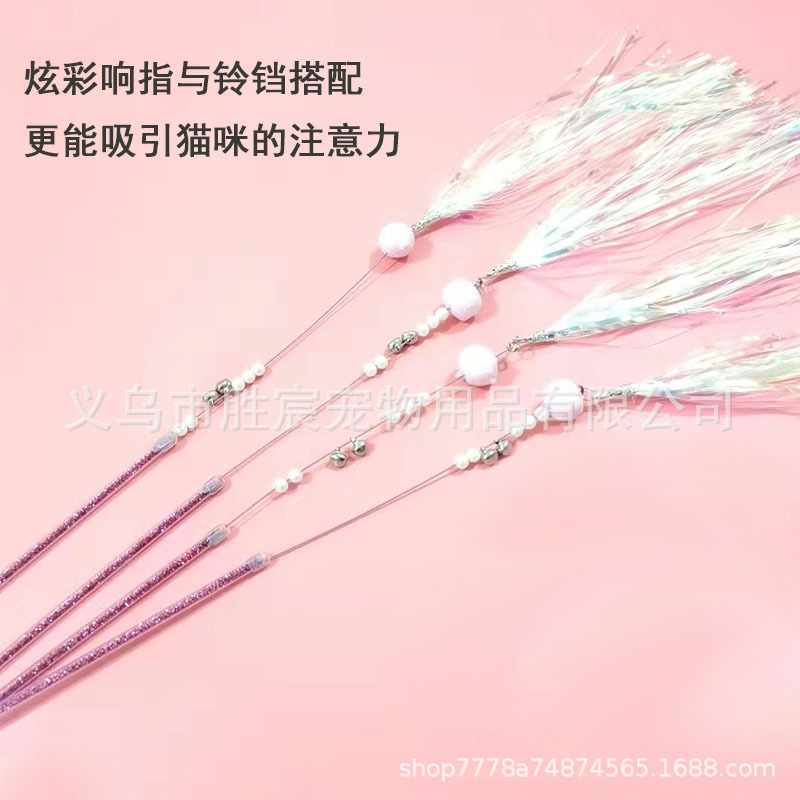 애완 동물 장난감 울리는 종이 고양이 스틱 다채로운 손가락 교체 머리 대화 형 요정 술 고양이 스틱 고양이 장난감 도매스토어 가기
