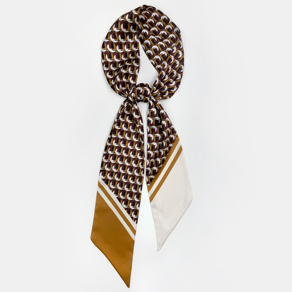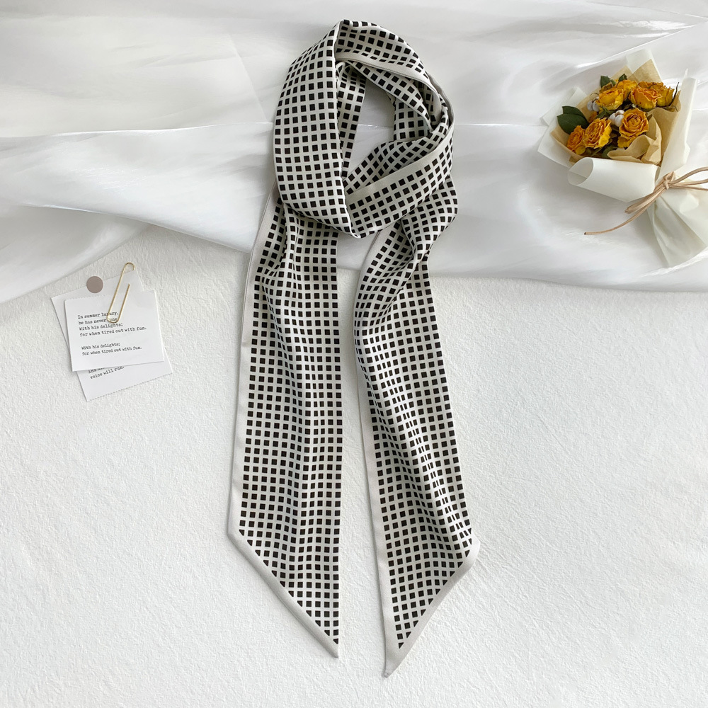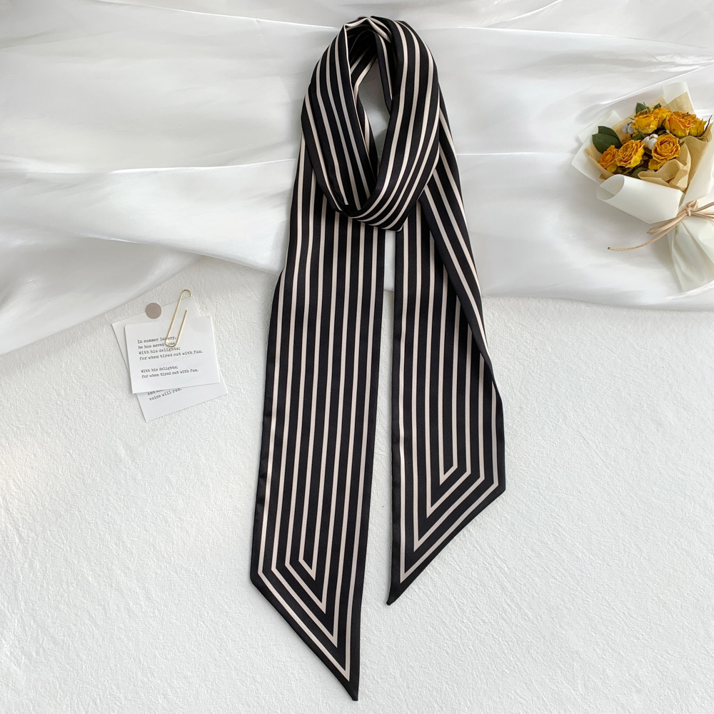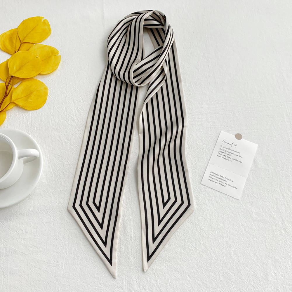 유럽과 미국의 새로운 기하학적 실크 리본 모든 일치 셔츠 세트 목 보호 긴 스카프와 간단한 세로 줄무늬 스카프스토어 가기