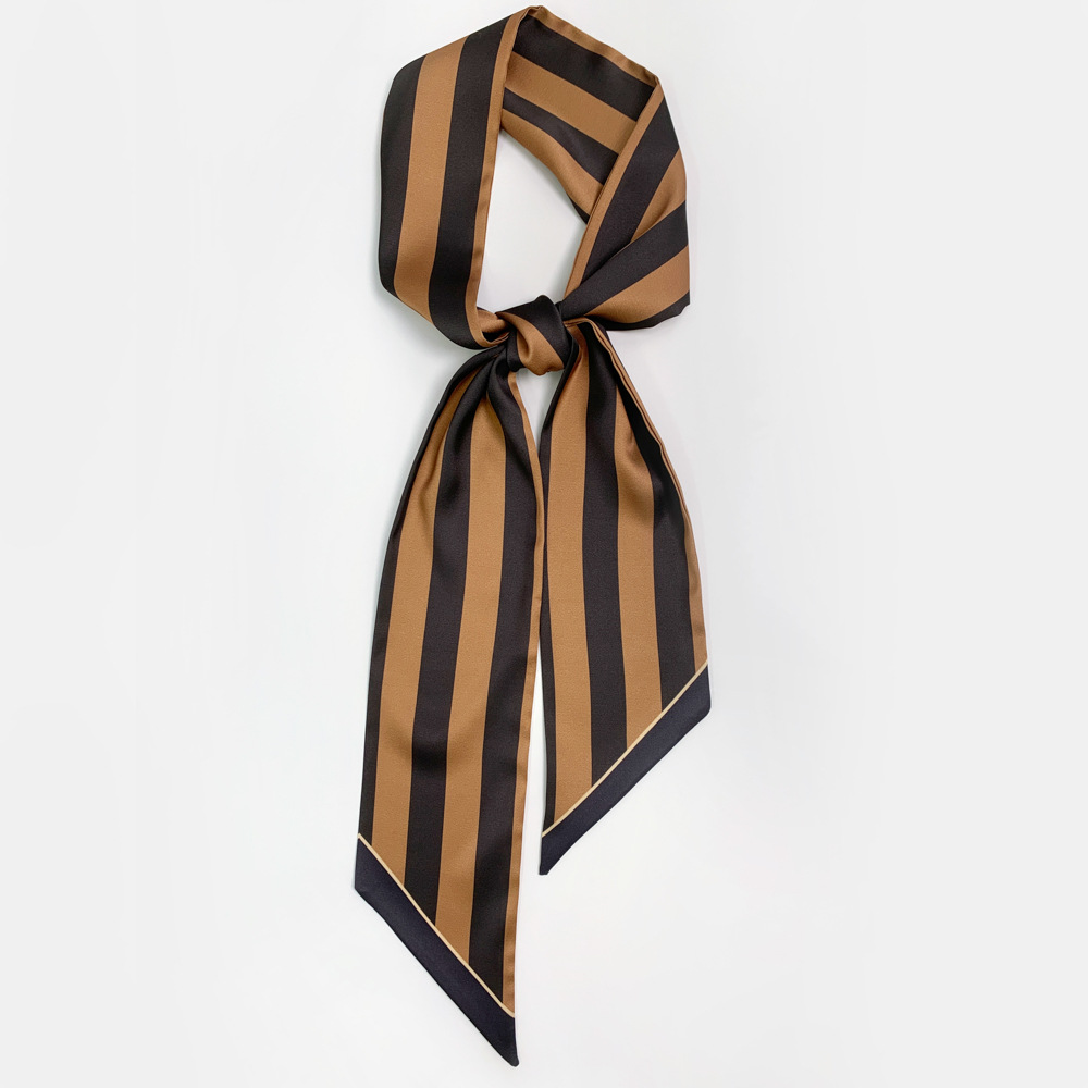 유럽과 미국의 새로운 기하학적 실크 리본 모든 일치 셔츠 세트 목 보호 긴 스카프와 간단한 세로 줄무늬 스카프