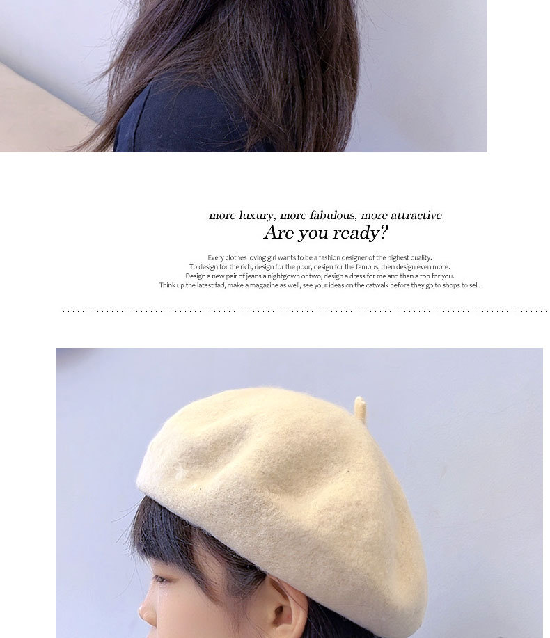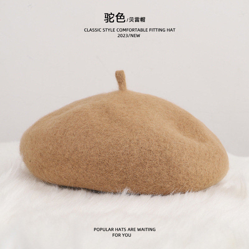 关于质量问题:贝雷帽的颜色都是染色上去的,个别米色上面掺杂有黑色的毛毛,是因为染色不全遗漏的,可以剪掉或者粘掉就可以了
