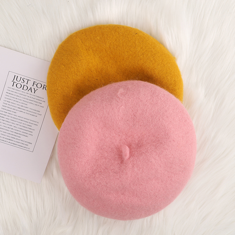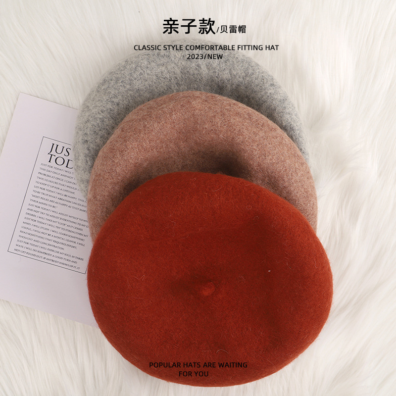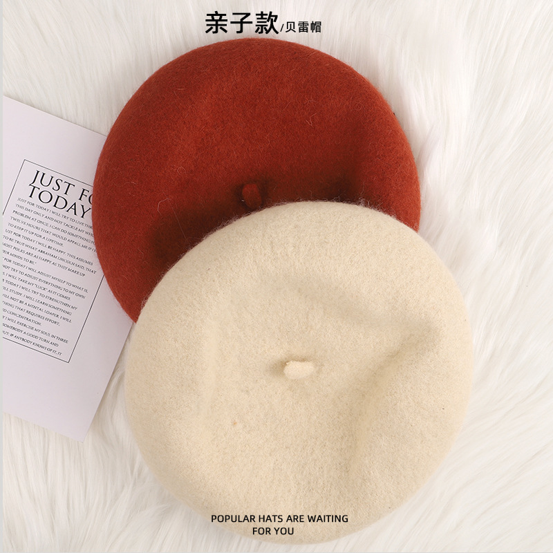 단색 어린이 베레모 여성 모직 다목적 가을, 겨울 소녀 부모-자식 화가 모자 모직 모자 모직 모자