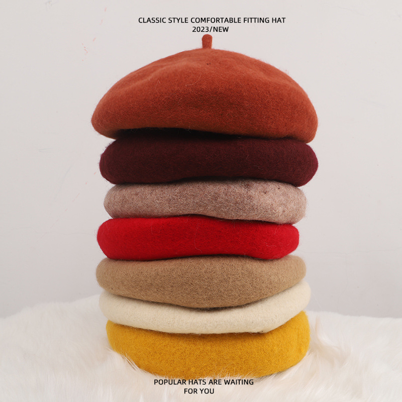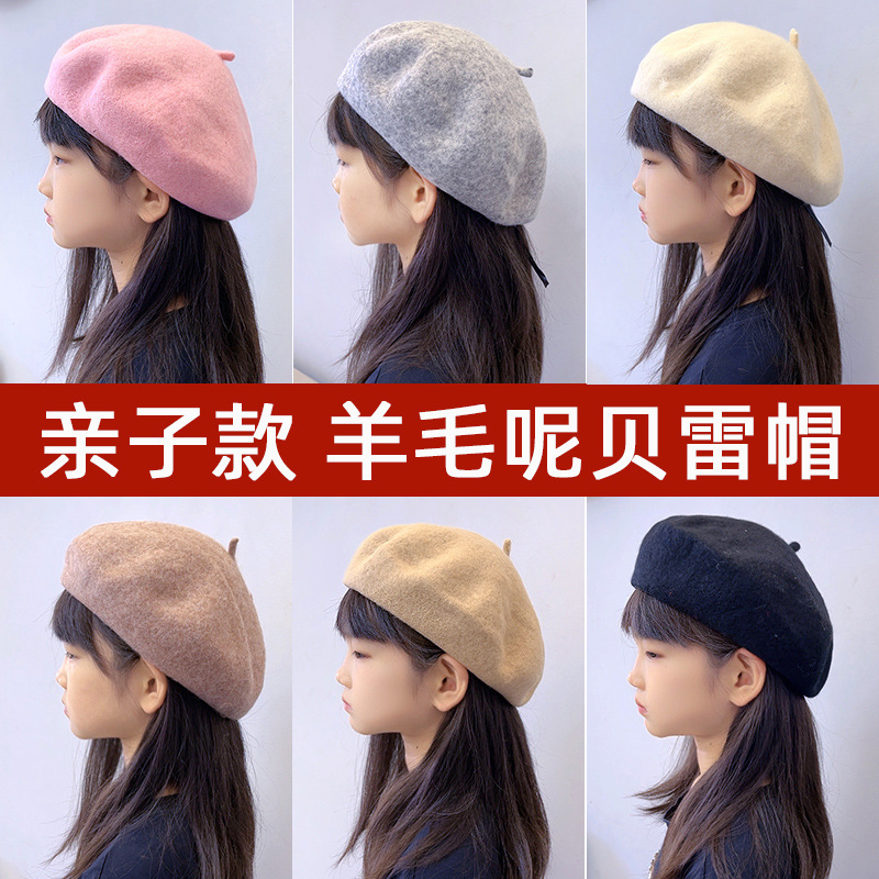 단색 어린이 베레모 여성 모직 다목적 가을, 겨울 소녀 부모-자식 화가 모자 모직 모자 모직 모자스토어 가기