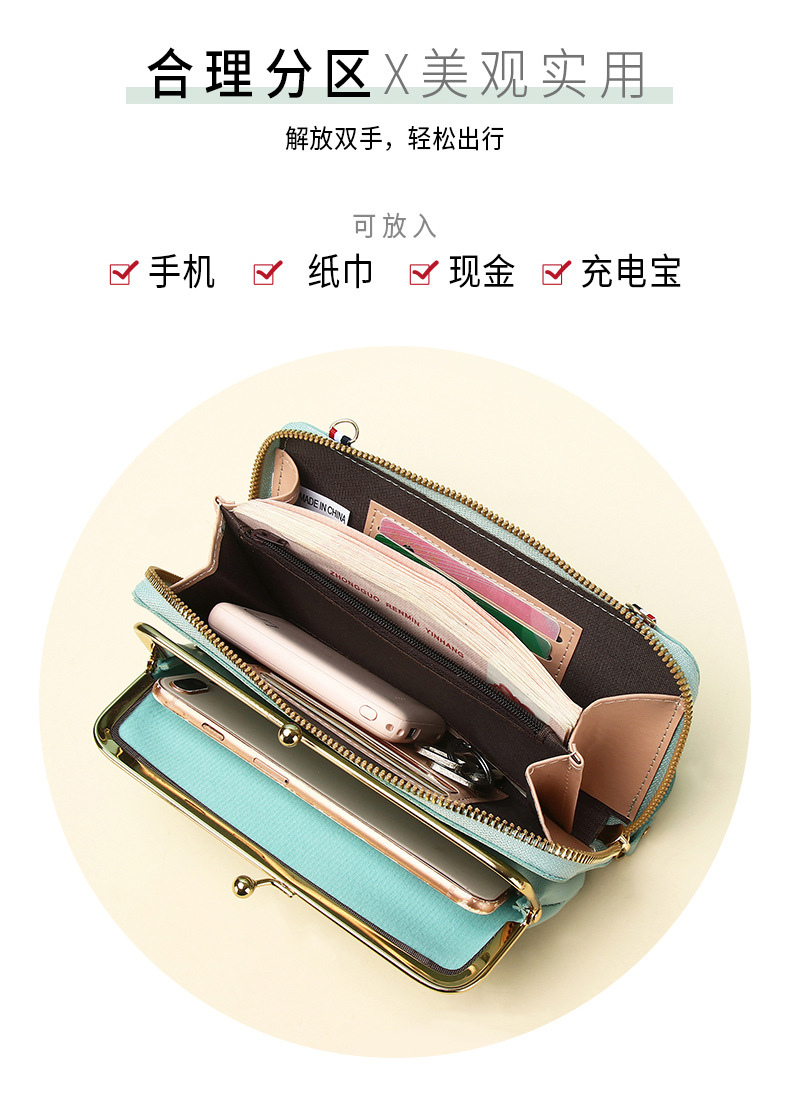 공장 직판 다용도 여성 미니백 한국 스타일 단색 심플 가로형 지퍼 핸드폰 가방 크로스백 지갑스토어 가기