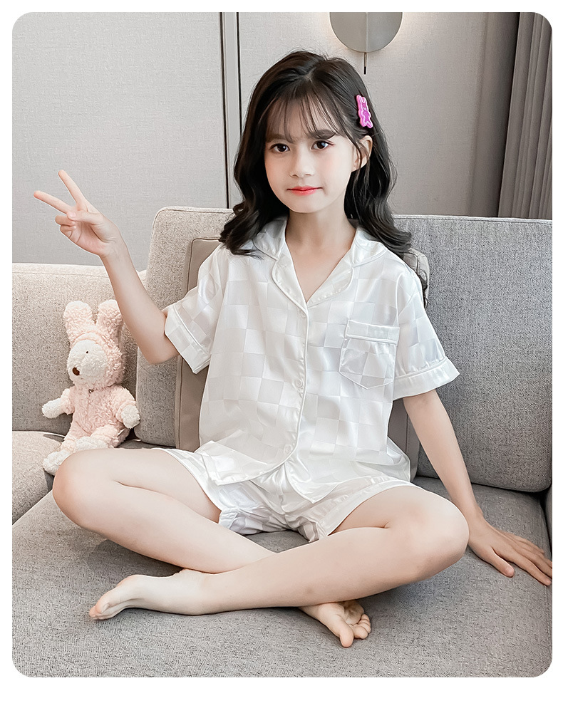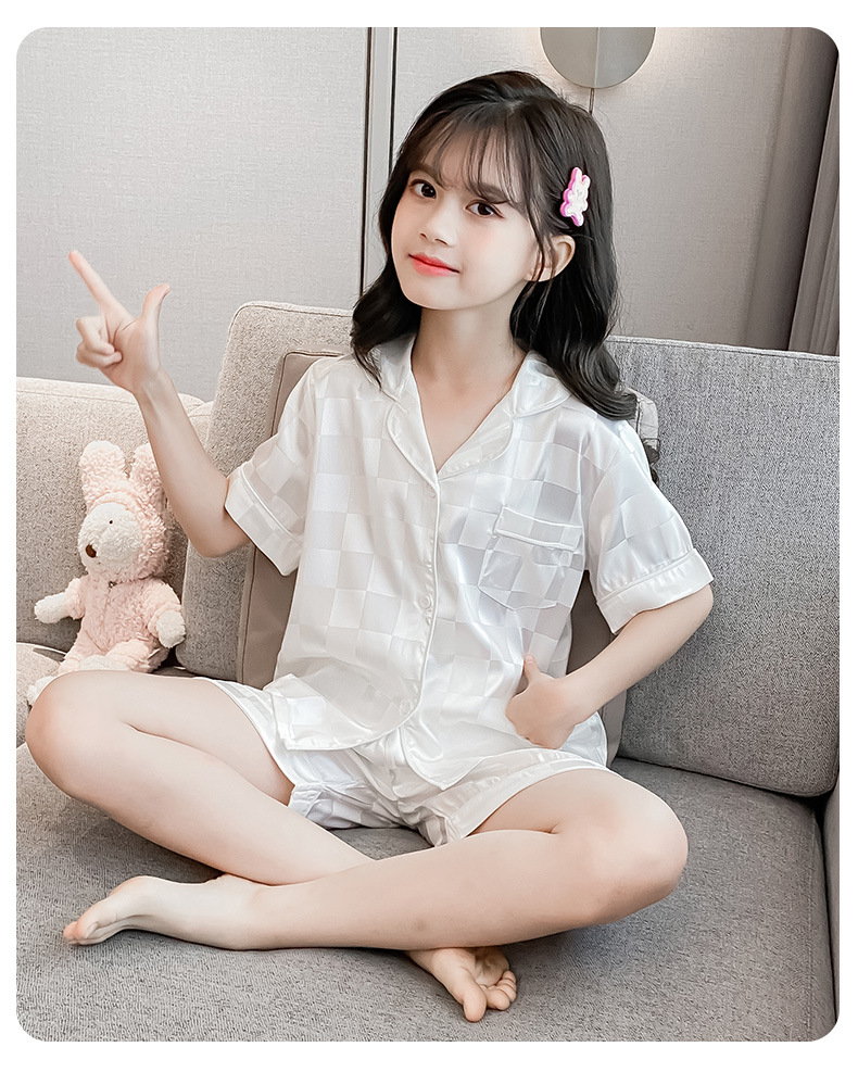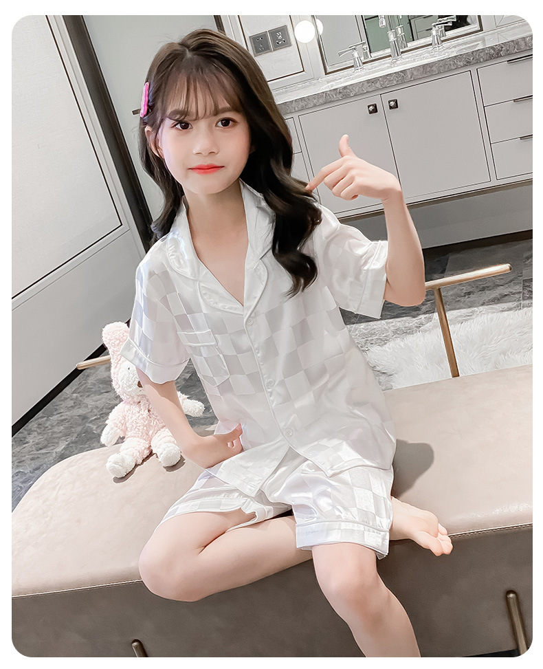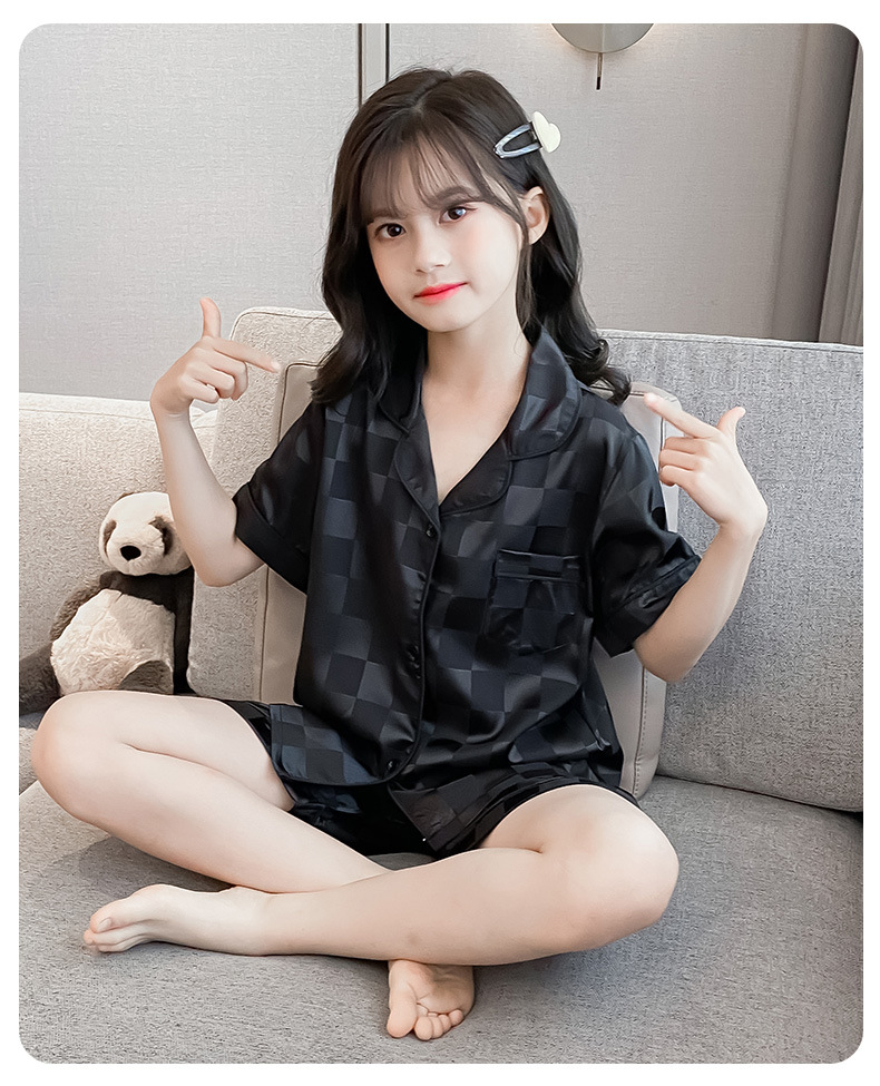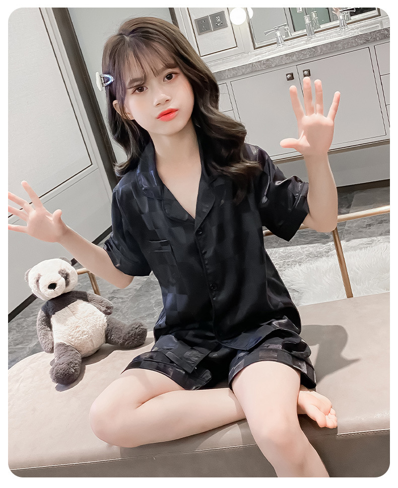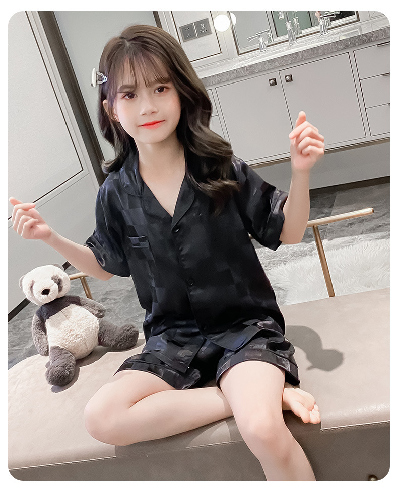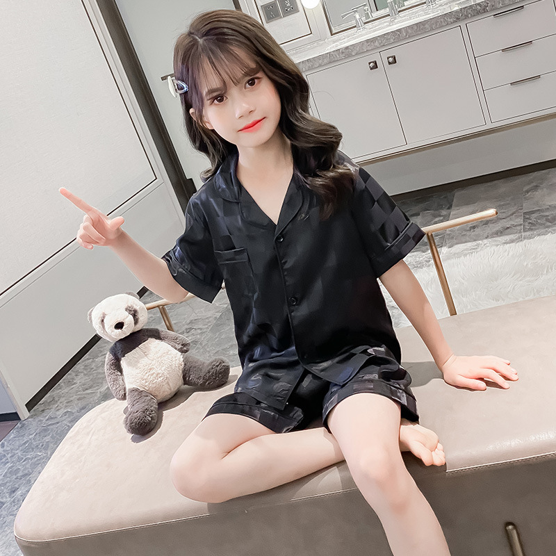 어린이 잠옷 여름 여아 가정 옷 얇은 반팔 어머니-딸 부모-자식 옷 에어컨 옷 세트