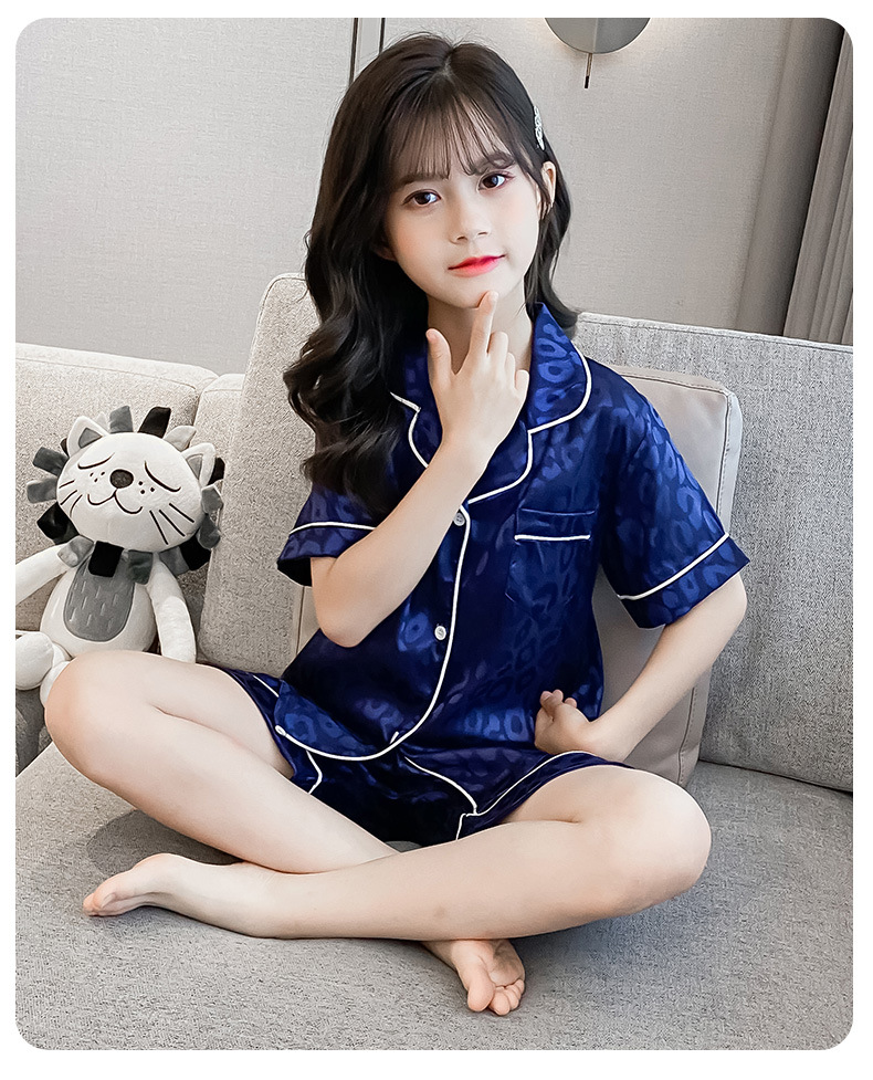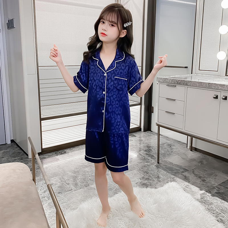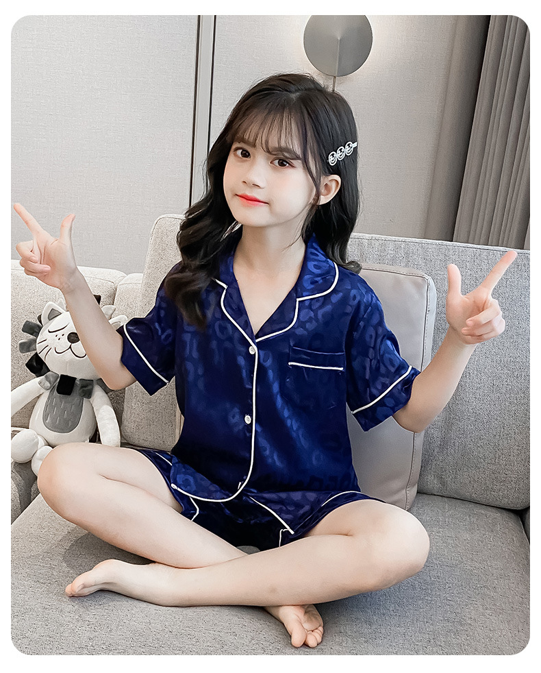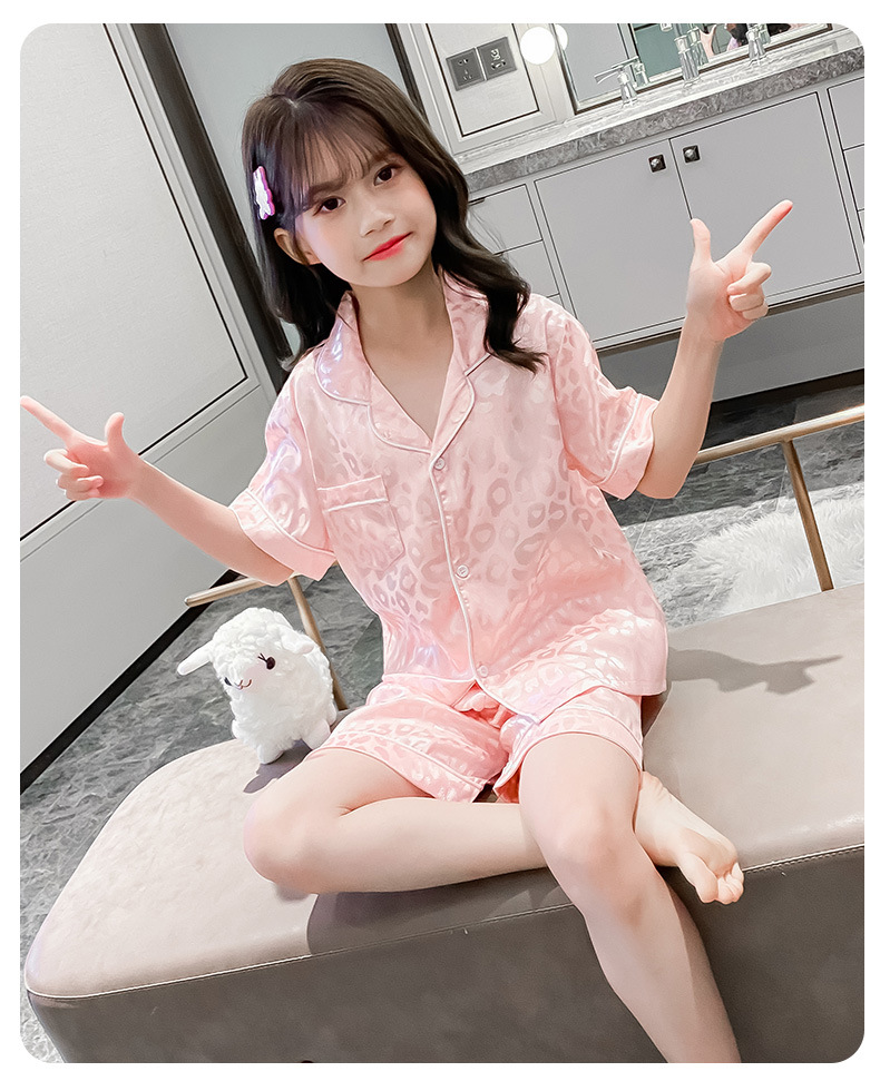 어린이 잠옷 여름 여아 가정 옷 얇은 반팔 어머니-딸 부모-자식 옷 에어컨 옷 세트스토어 가기