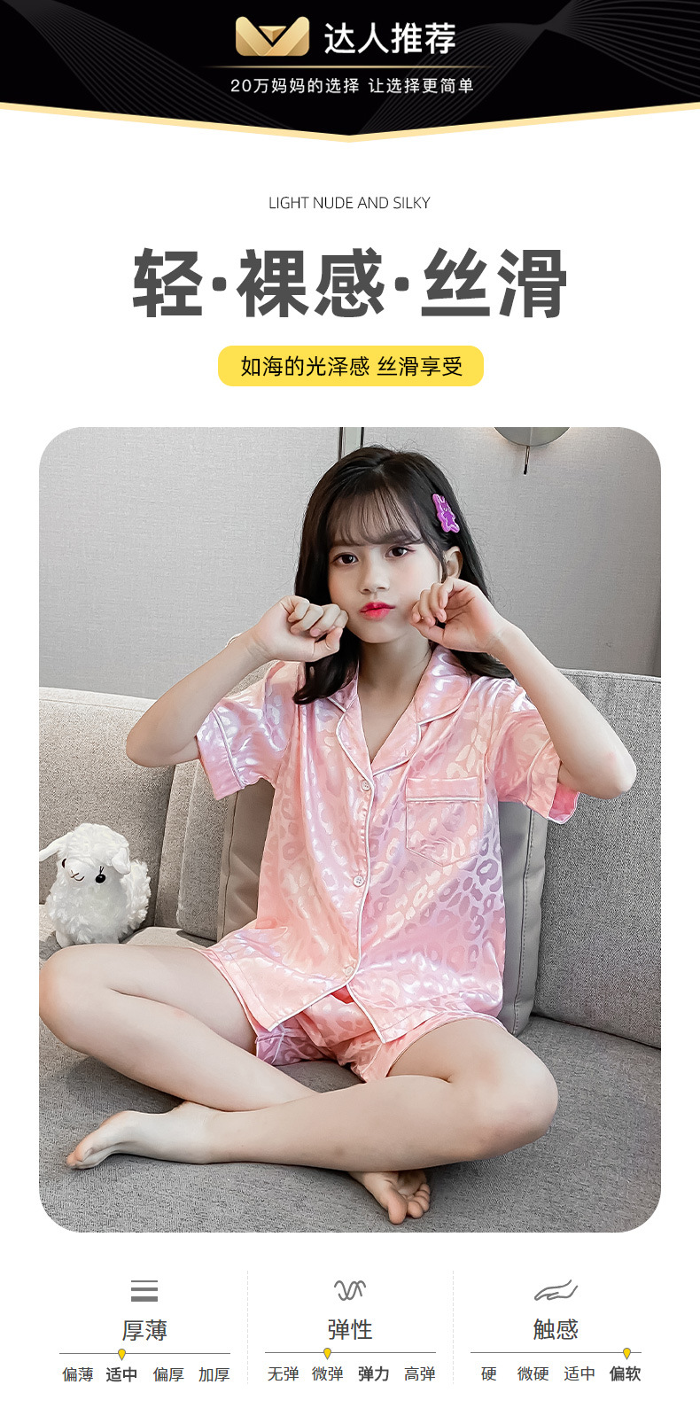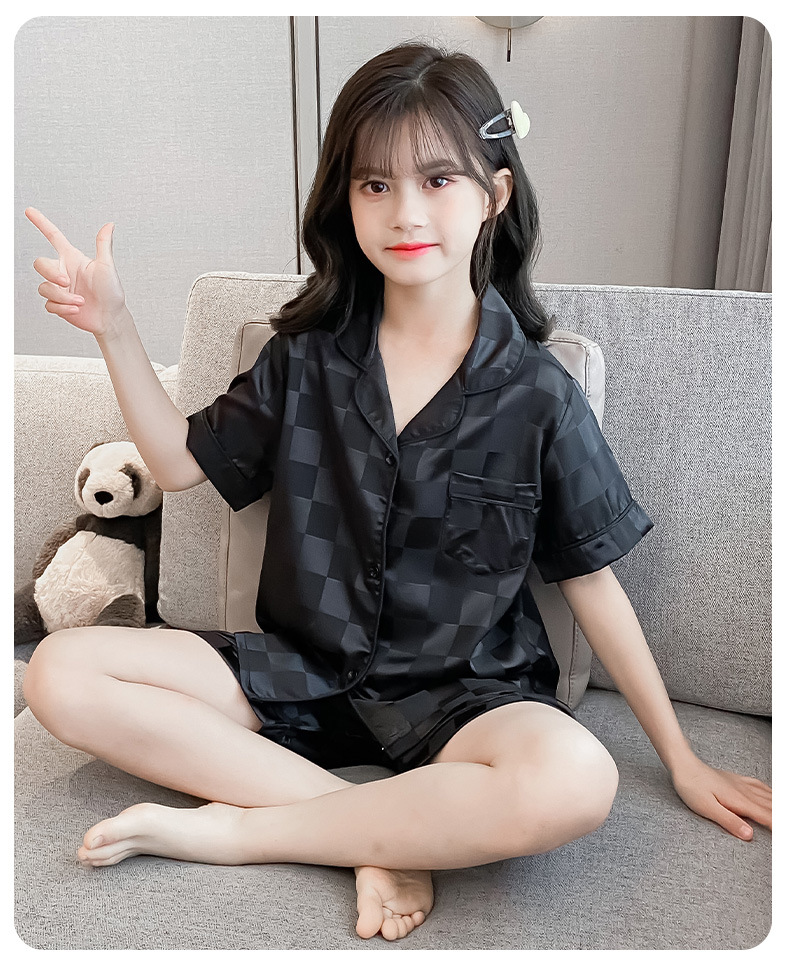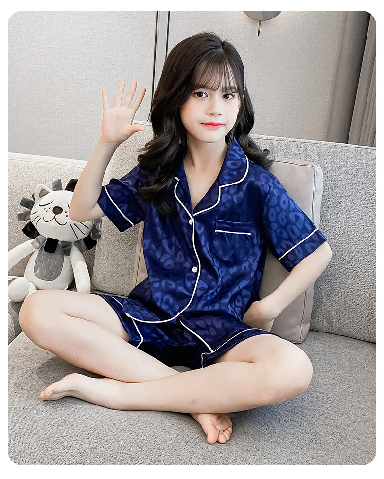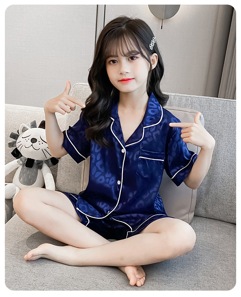 어린이 잠옷 여름 여아 가정 옷 얇은 반팔 어머니-딸 부모-자식 옷 에어컨 옷 세트스토어 가기