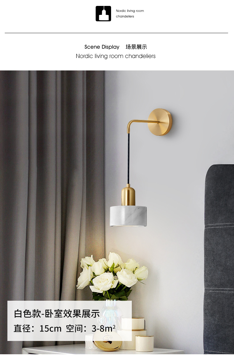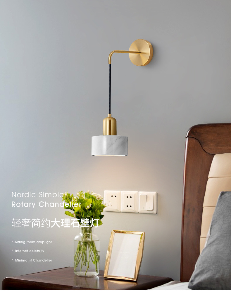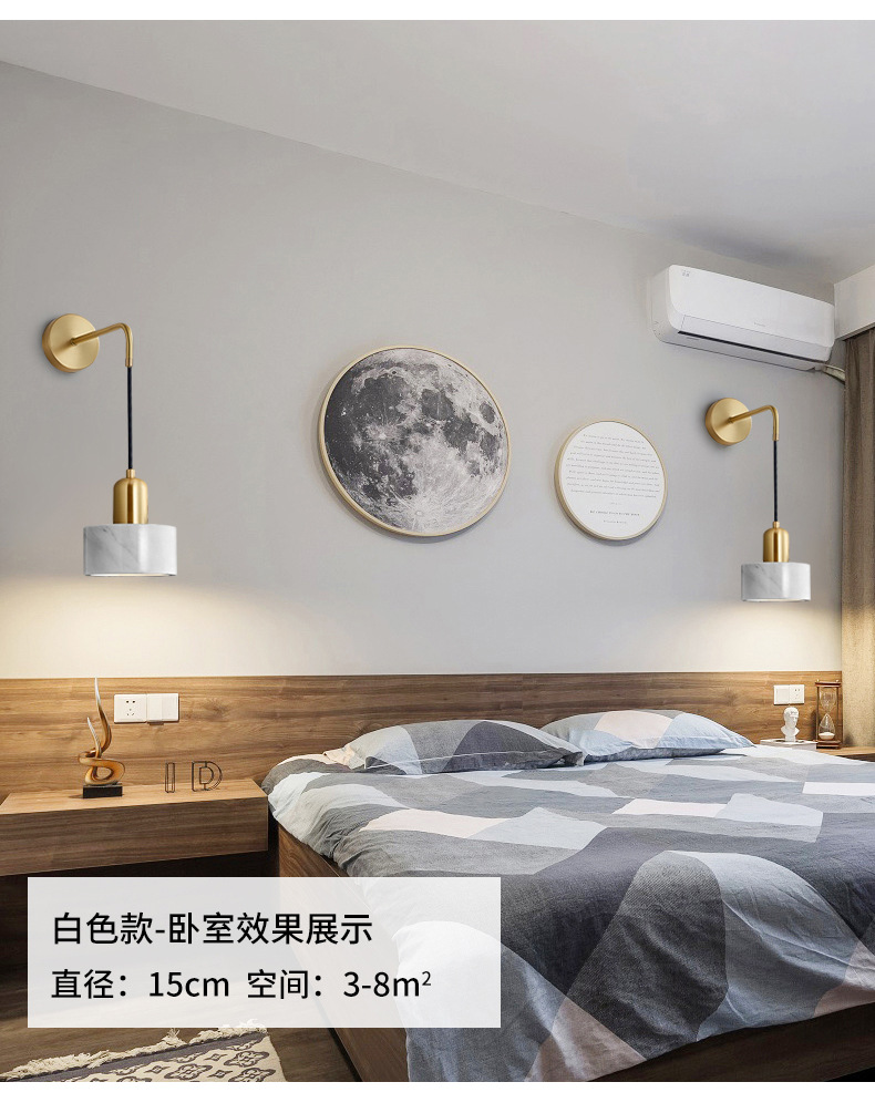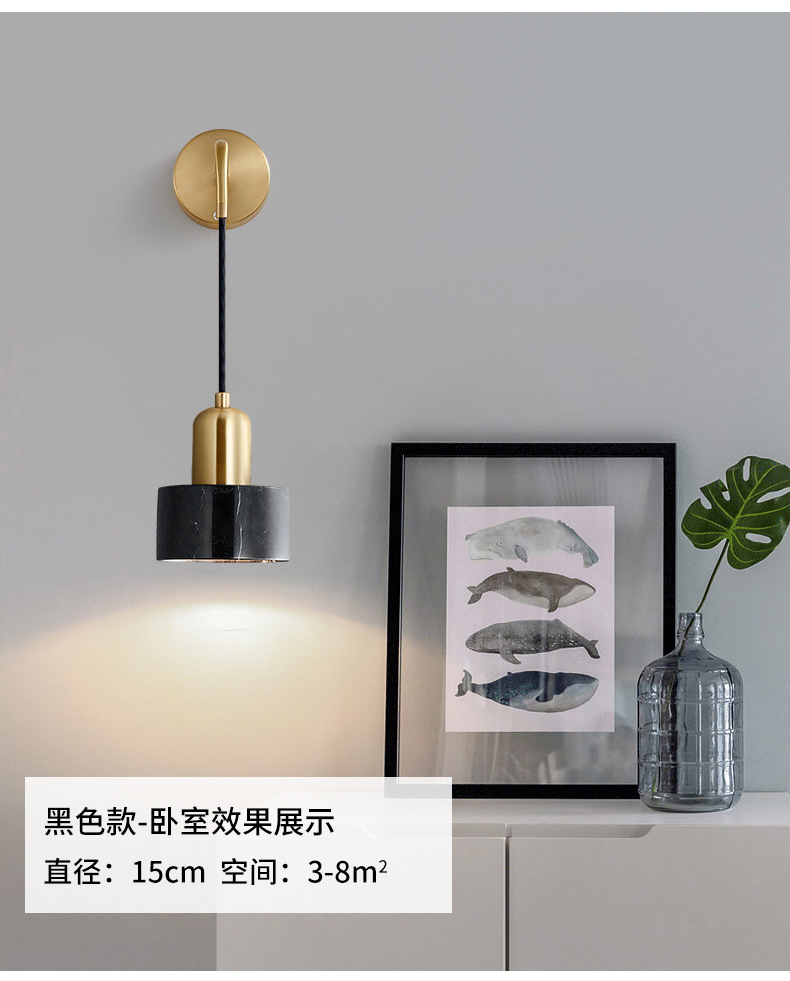 벽 램프 침실 침대 옆 램프 현대 간단한 빛 럭셔리 모든 구리 대리석 북유럽 창조적 인 거실 배경 벽 램프스토어 가기