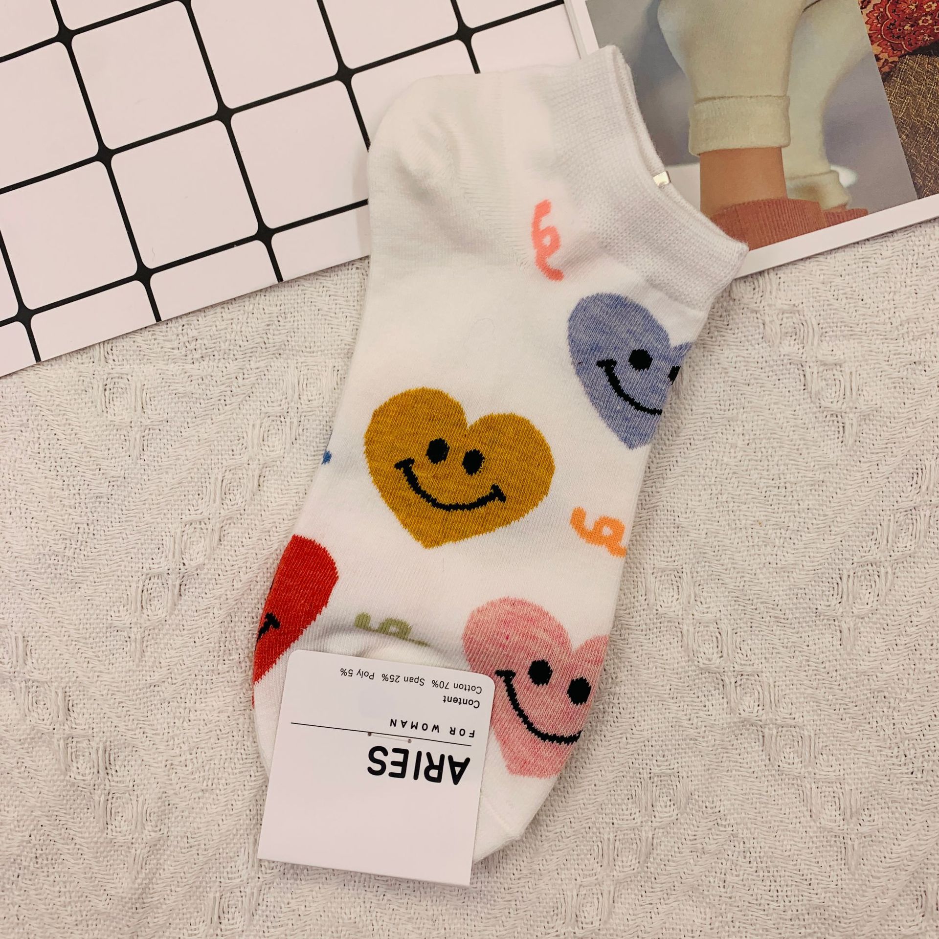 한국 동대문 봄과 여름 새로운 귀여운 스마일 사랑 소녀를위한 한국 스타일 짧은 양말스토어 가기