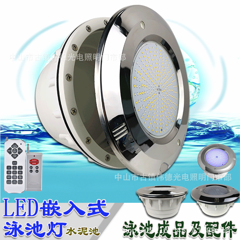 LED胶膜泳池灯预埋桶不锈钢嵌入式水底水下埋地灯par56潜水池外壳