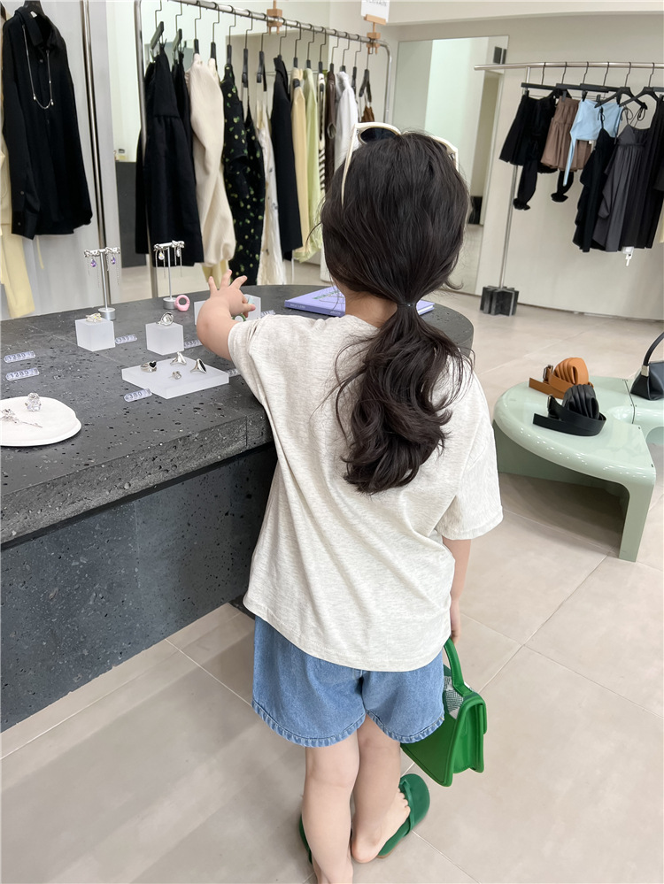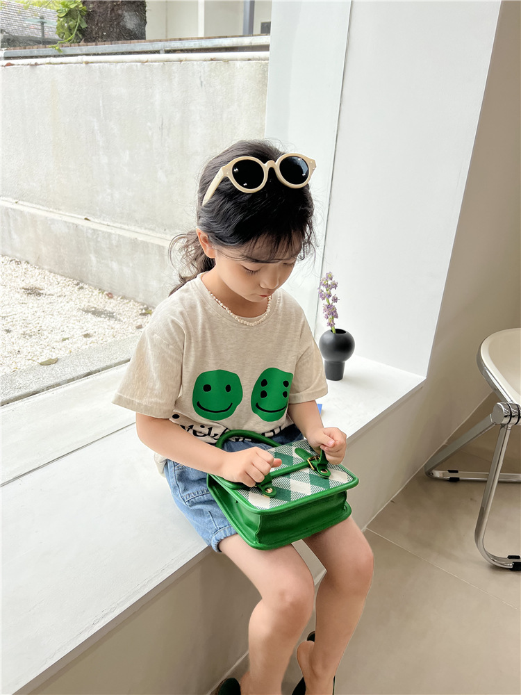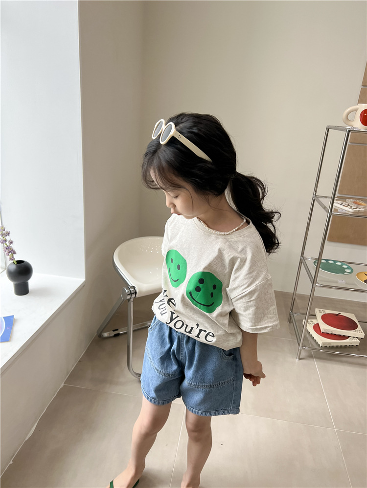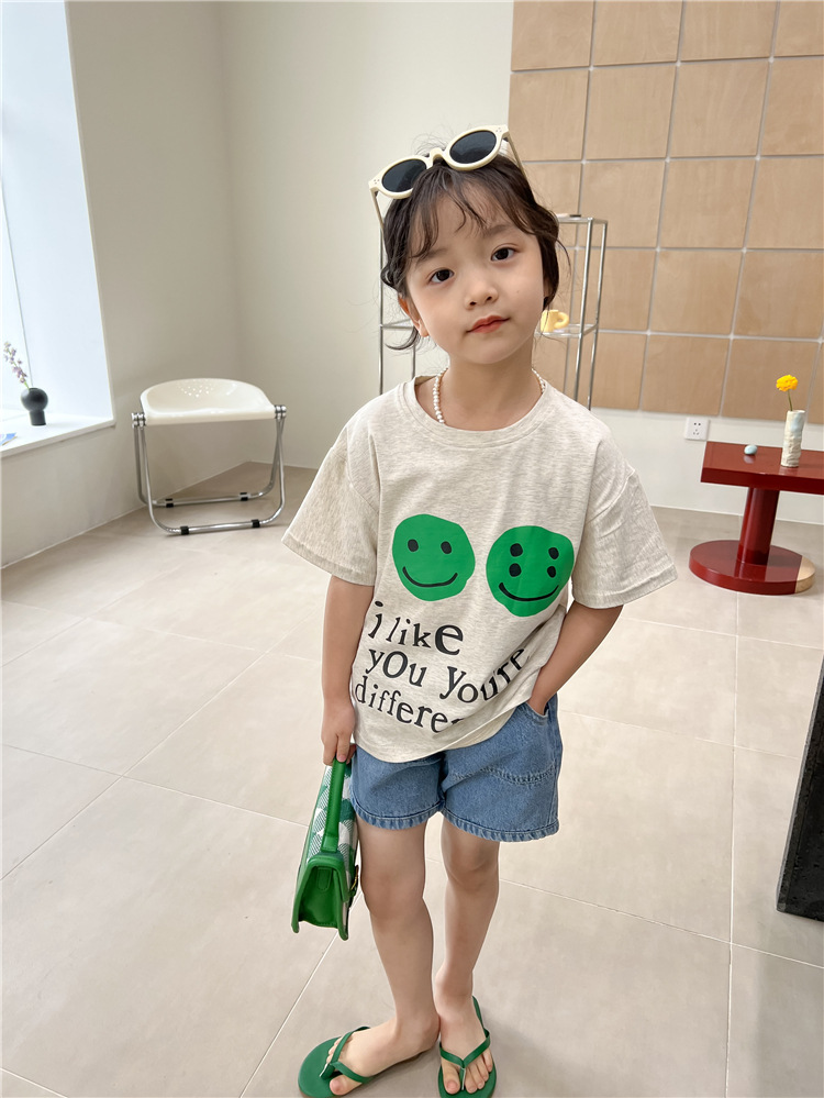 2022 여름 새로운 한국 여아 녹색 스마일 티셔츠 웨스턴 스타일 어린이 여름 흰색 반소매 탑 A274스토어 가기
