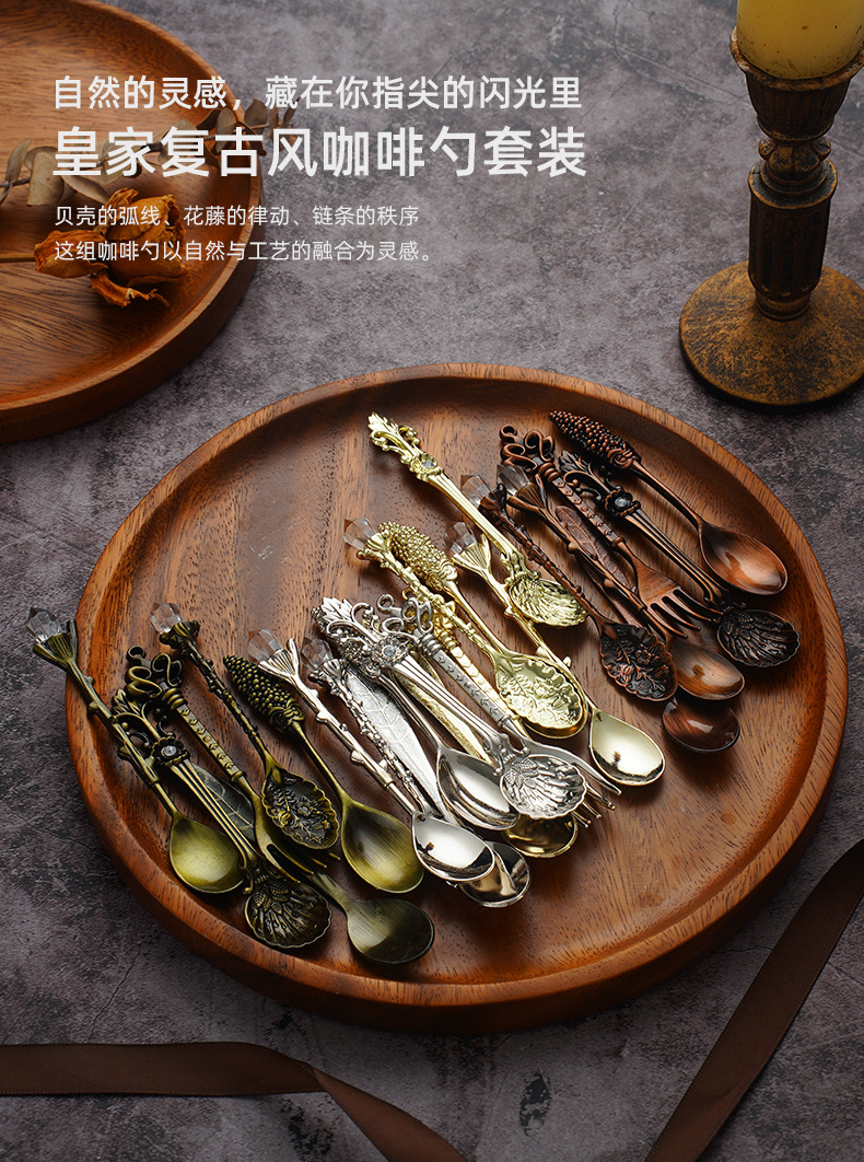 复古勺子是10到12cm的咖啡勺,请勿想象为吃饭的大勺哦!
