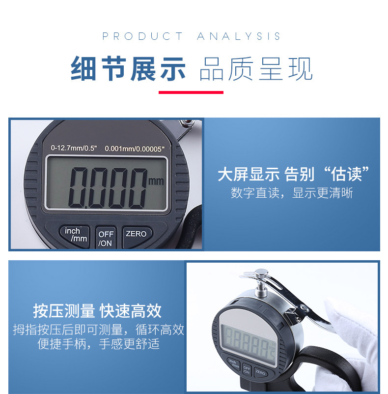 종이 두께 측정기 디지털 디스플레이 게이지 백분의 일 고정밀 0.001mm 측정기 필름 측정기