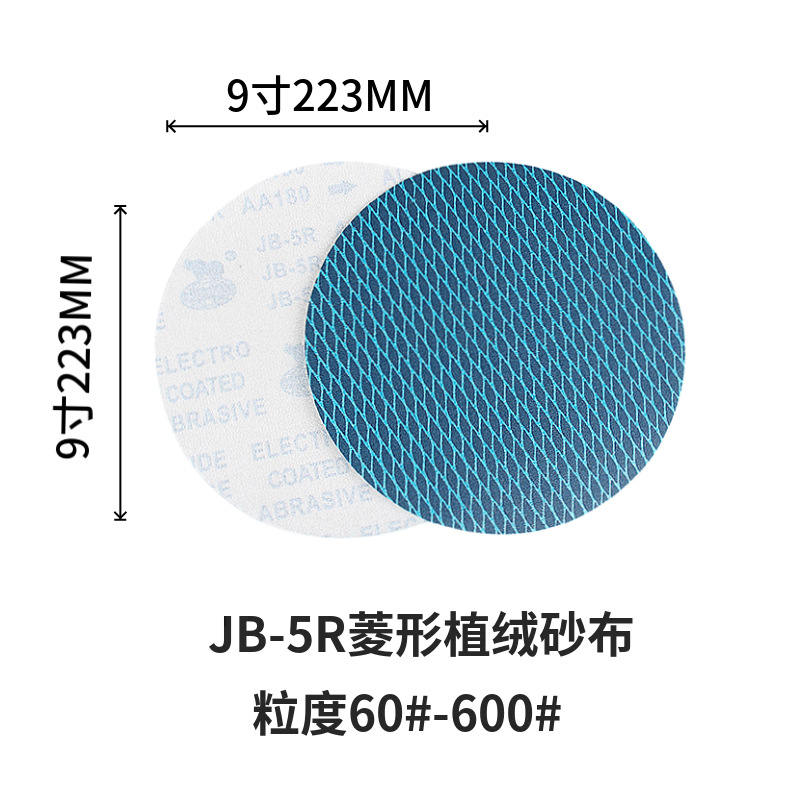 9inch JB-5R 다이아몬드 모양 벨벳 사포 벽면 연마용 라이노 소프트 천 블루 벨벳 원형 연마 디스크