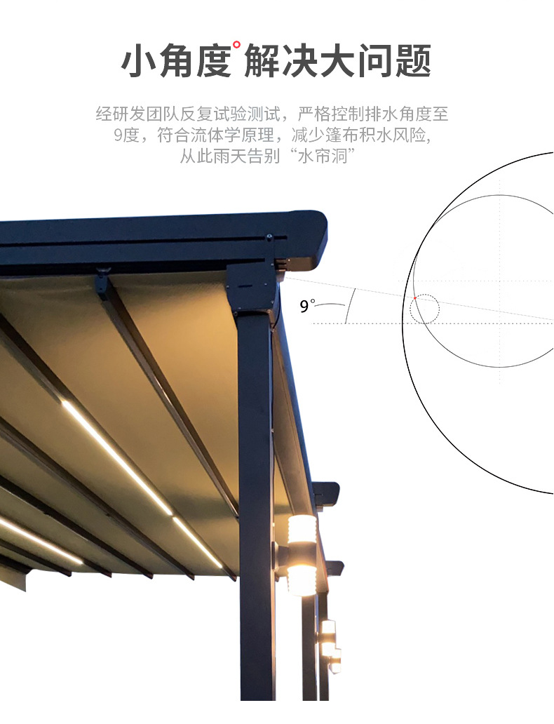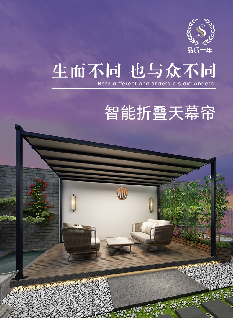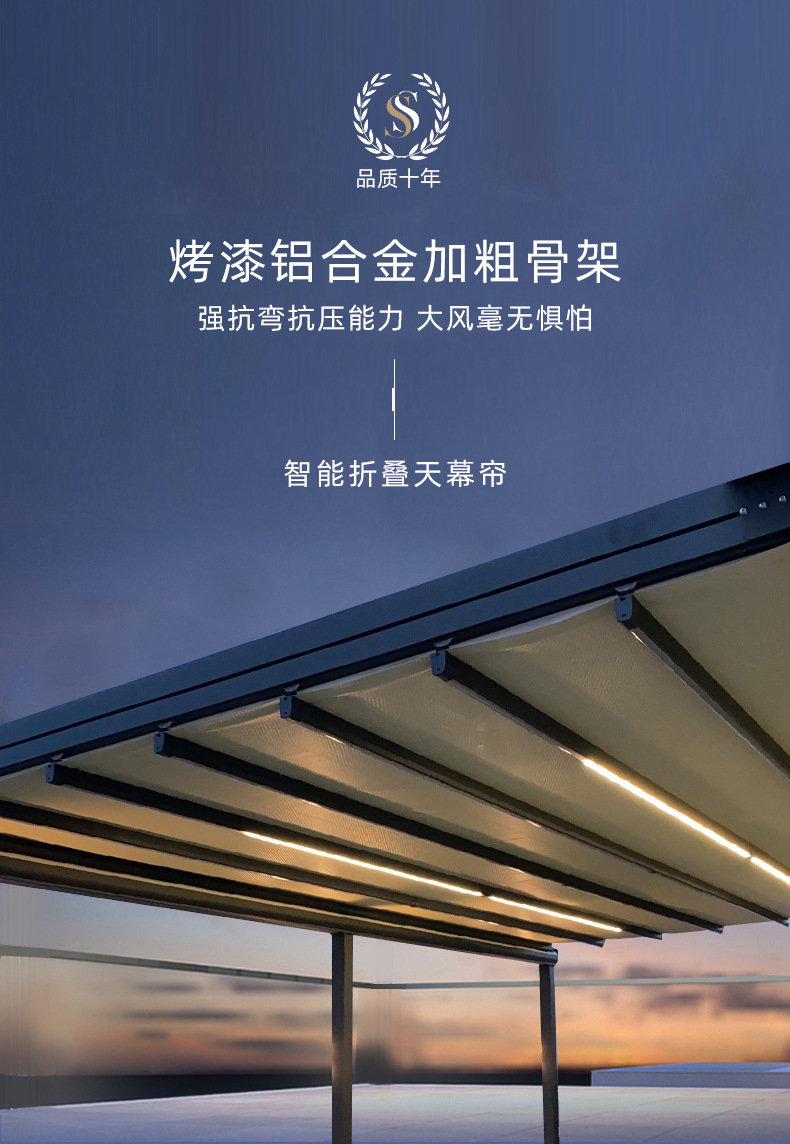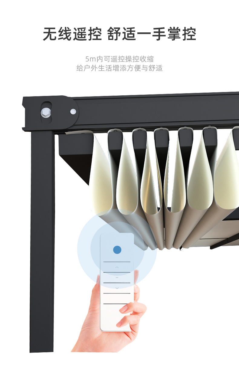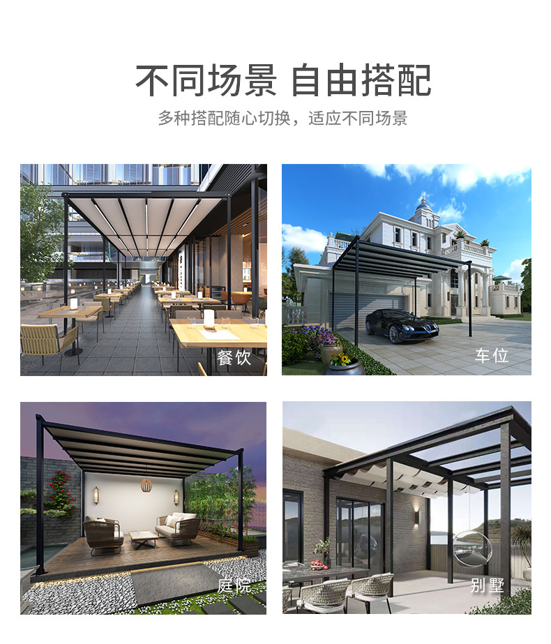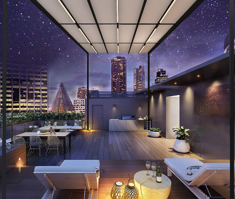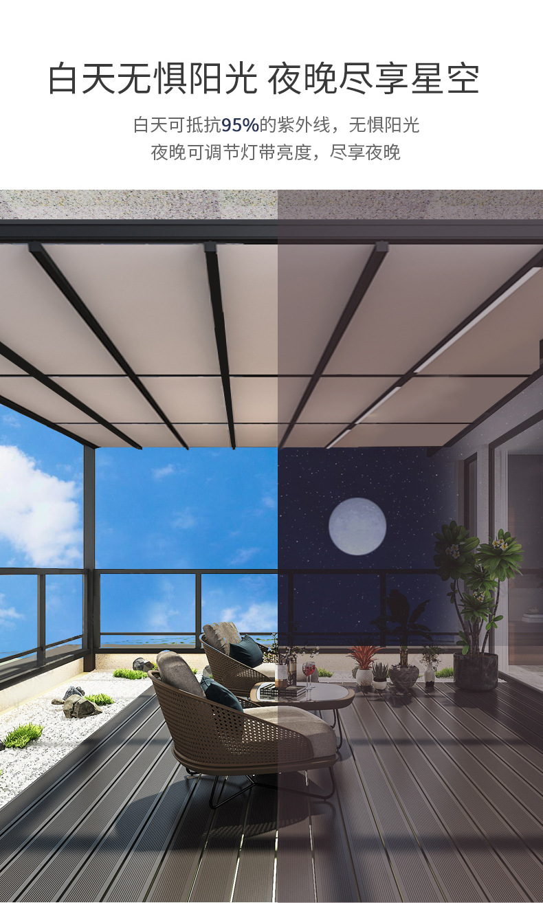지능형 원격 제어 발코니 캐노피 홈 안뜰 햇빛 방 천막 야외 전기 접이식 차양 및 단열 창고 도매
