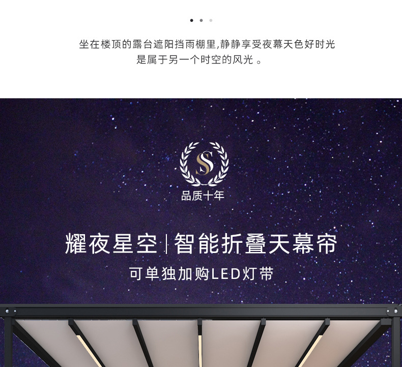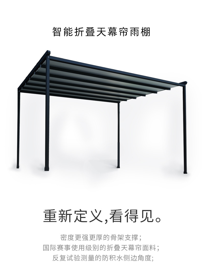 지능형 원격 제어 발코니 캐노피 홈 안뜰 햇빛 방 천막 야외 전기 접이식 차양 및 단열 창고 도매스토어 가기