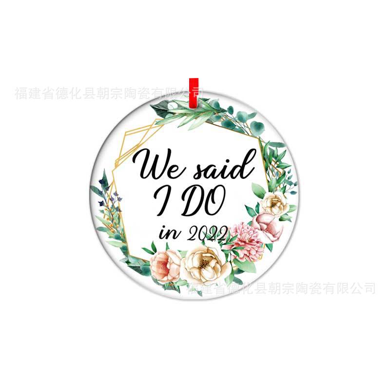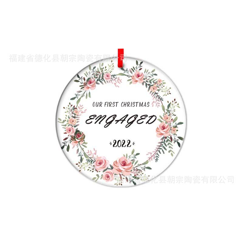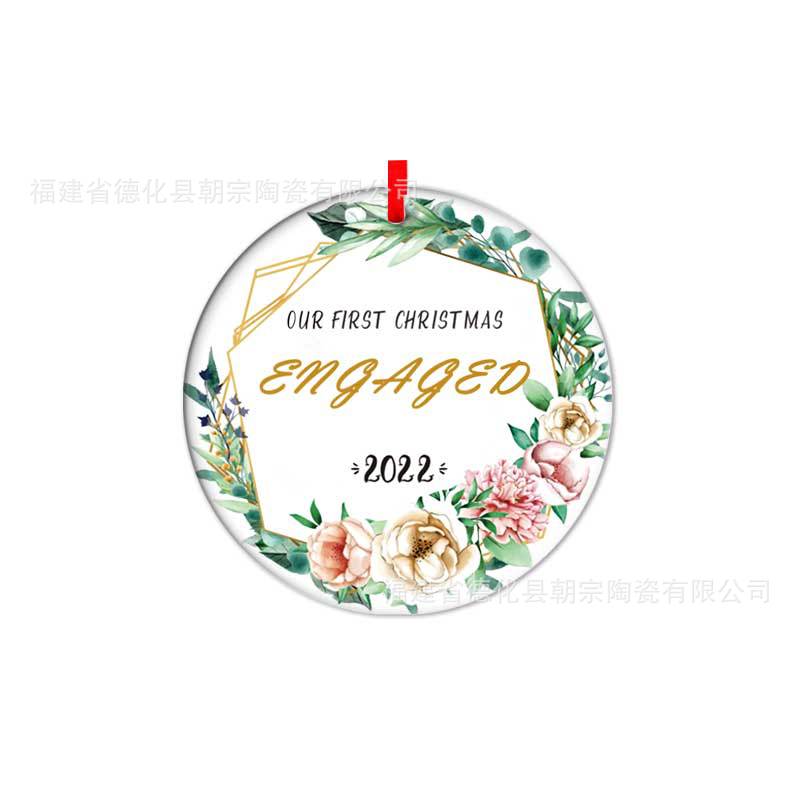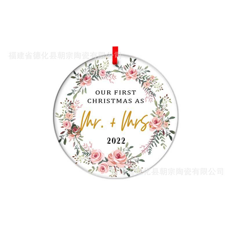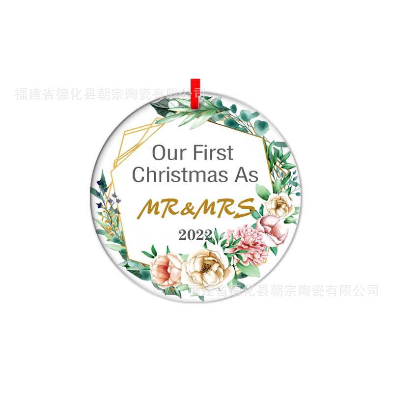 크로스 보더 아마존 새로운 크리스마스 매달려 라운드 단면 양면 인쇄 크리스마스 공 세라믹 펜던트 장식