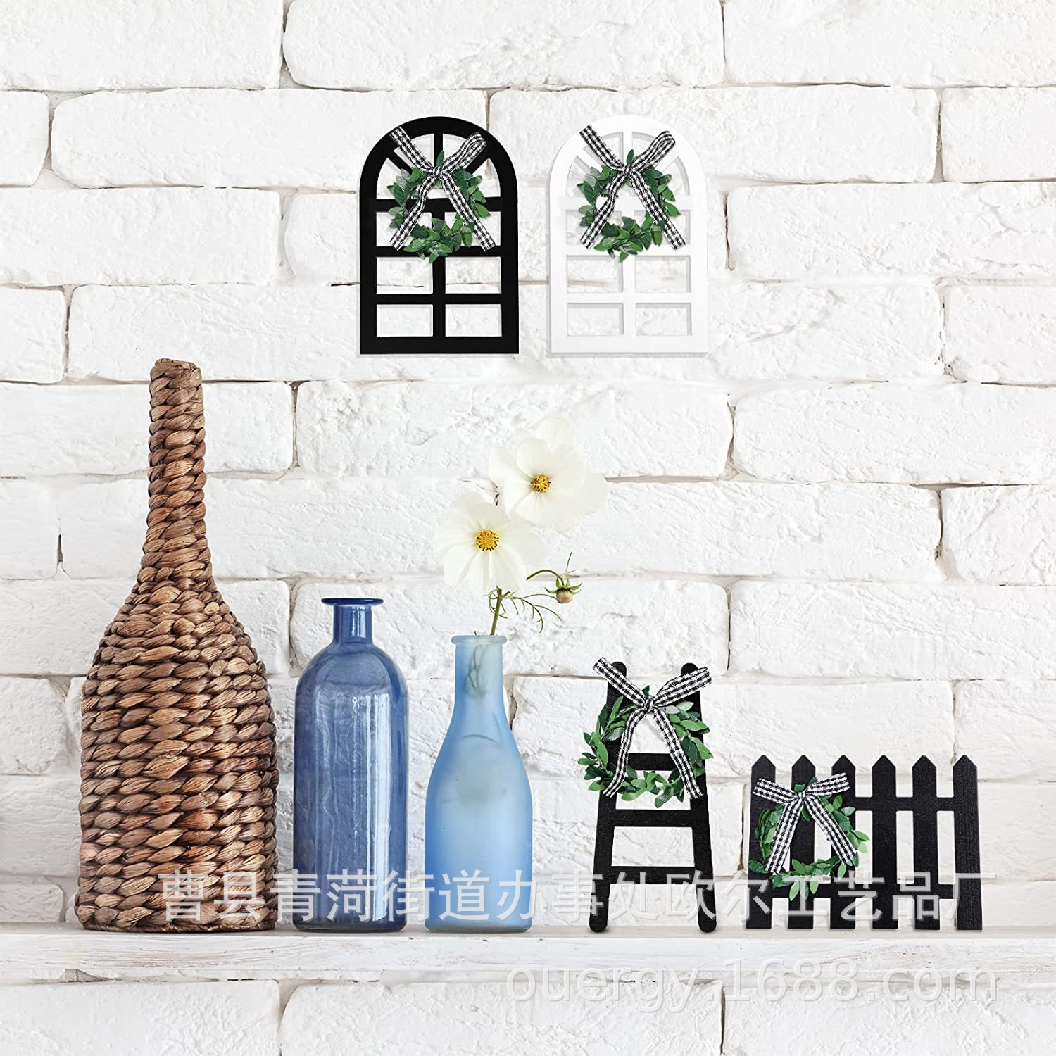 미국 컨트리 스타일 나무 창 벽 장식 흑백 격자 무늬 대성당 아치 창 표지판 울타리 강한 장식스토어 가기