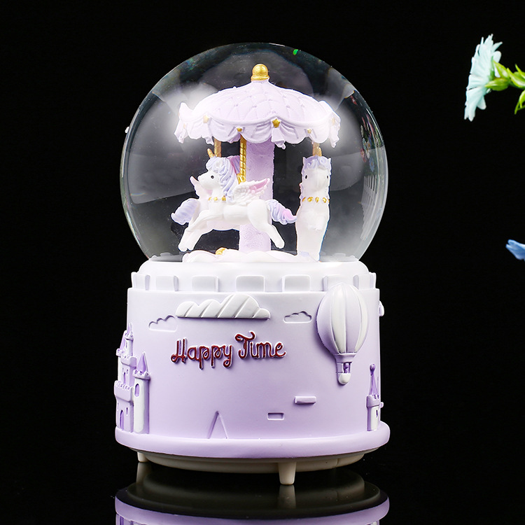 회전 목마 음악 크리스탈 볼 성 뮤직 박스 어린이 생일 선물 학생 창조적 인 선물 데스크탑 장식